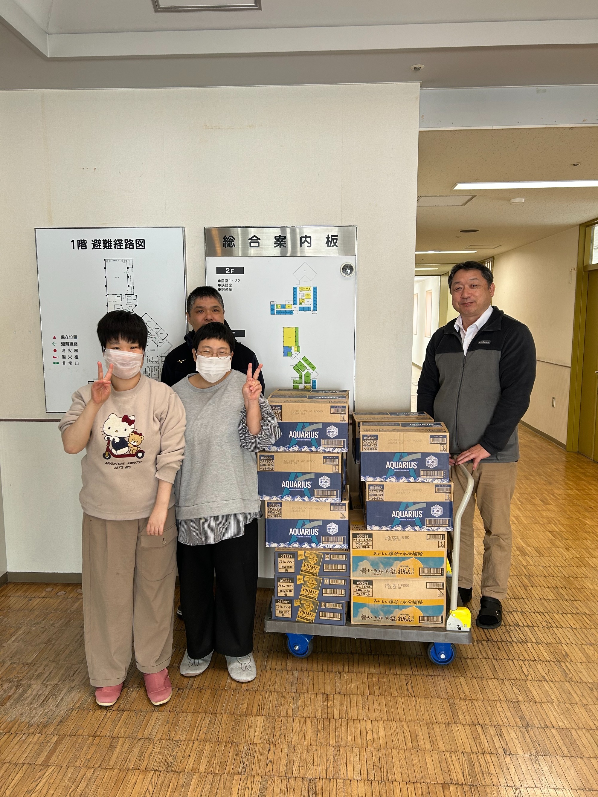 北海道コカ・コーラ株式会社岩見沢支店様より飲み物の御寄贈を賜りました。雪の降る中、お届けくださり誠にありがとうございました。