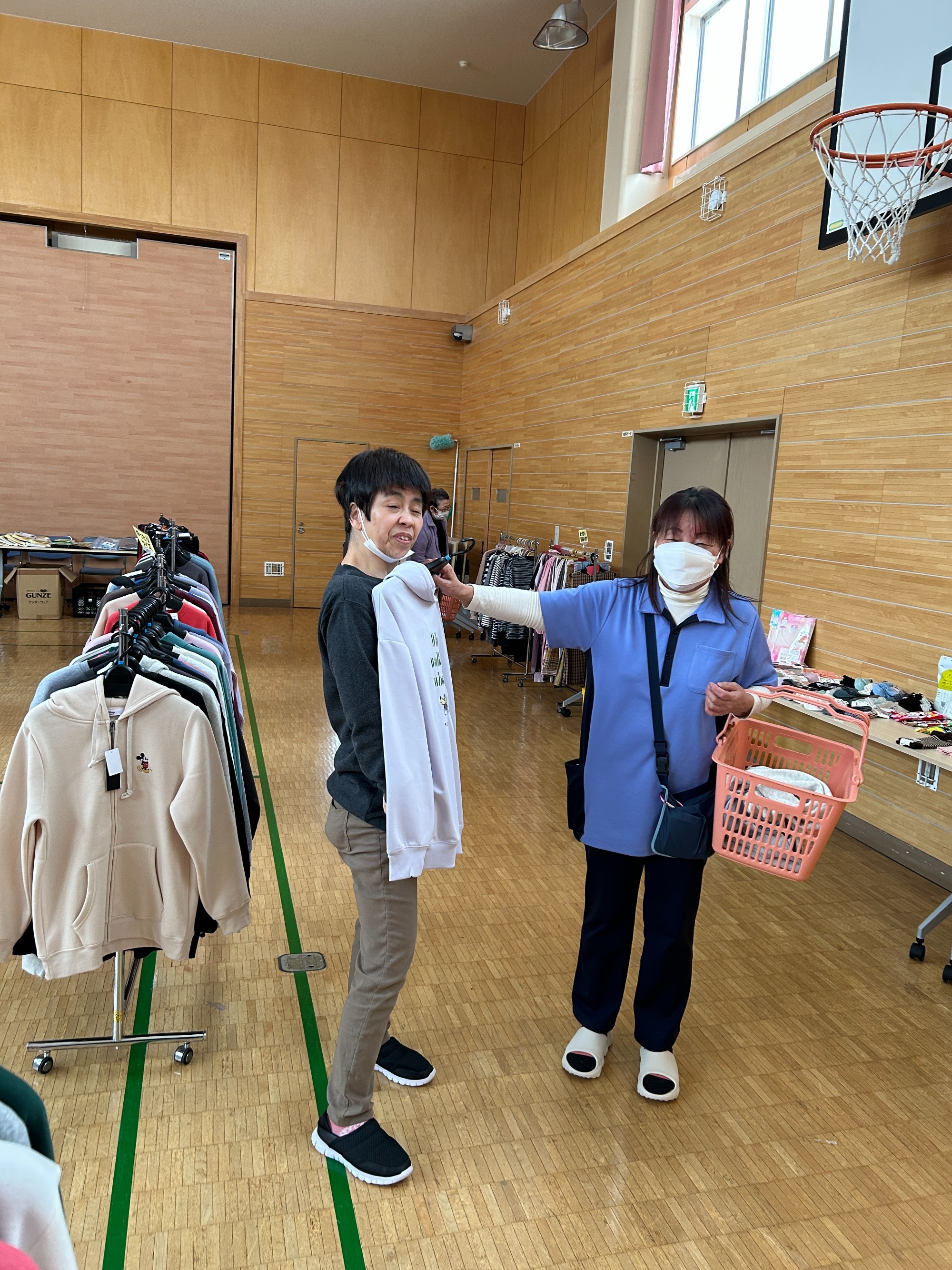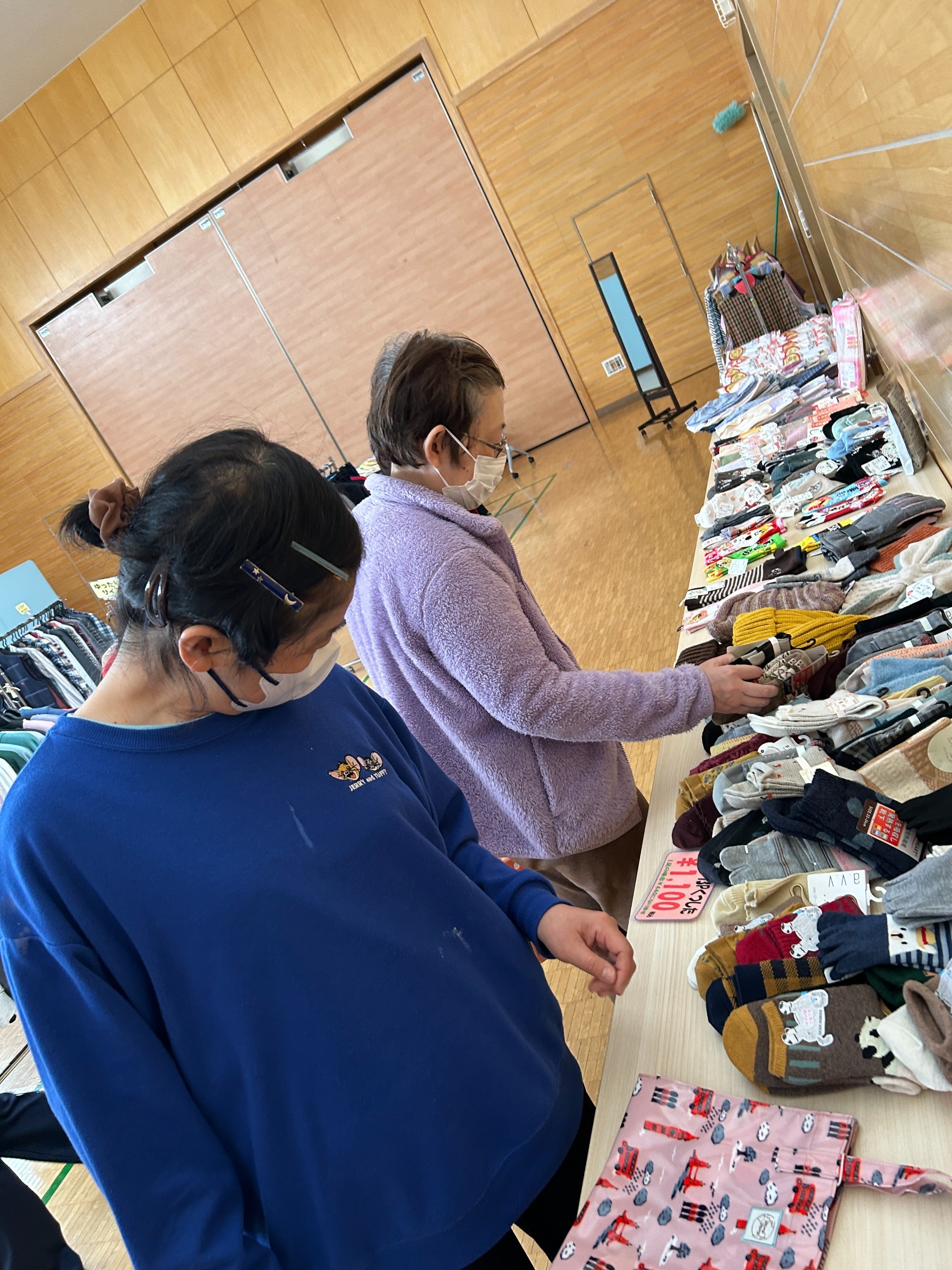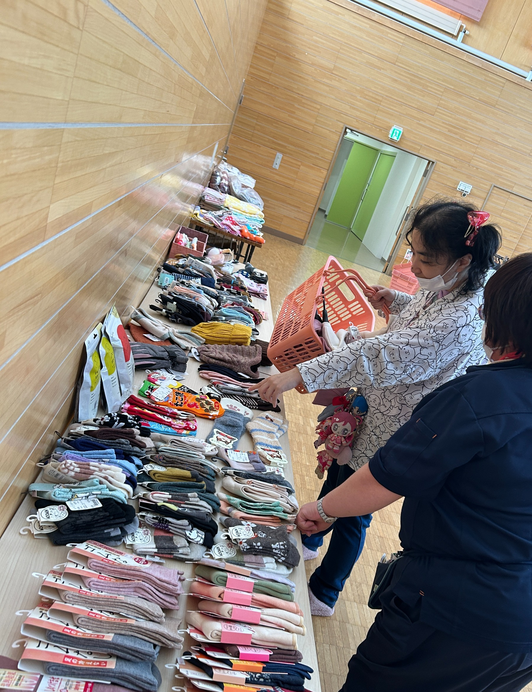 地域交流ホームに品物をひろげてお店みたいですね。さて、お気に入りの服は買えたでしょうか?