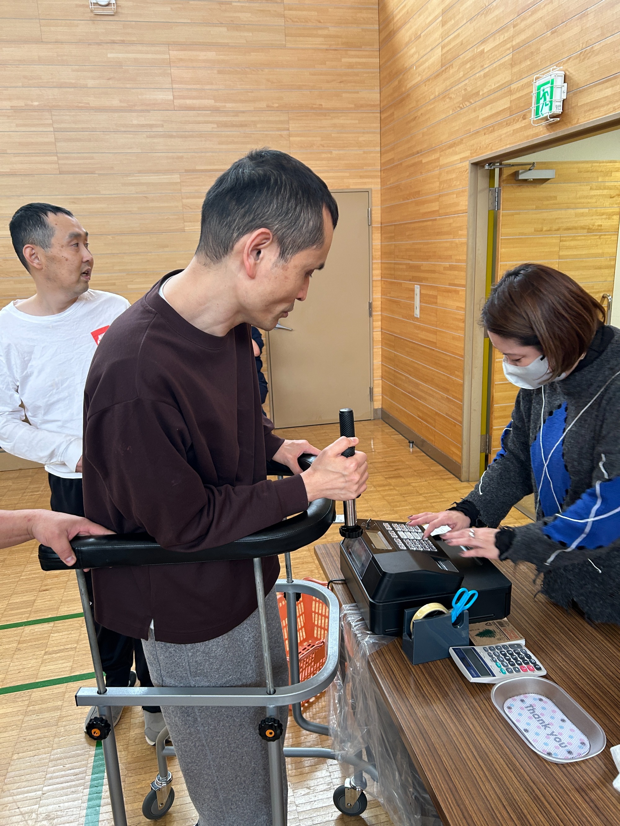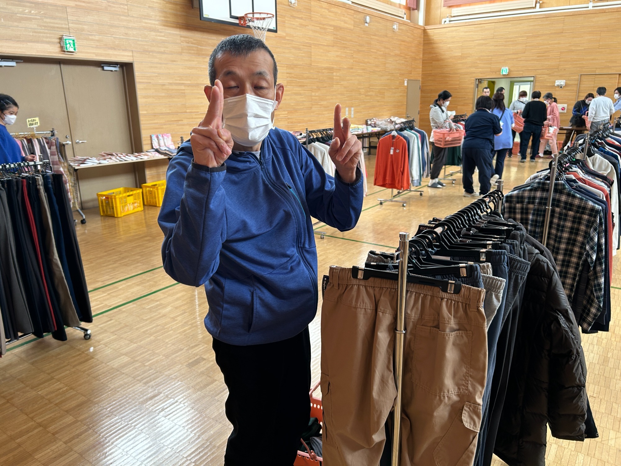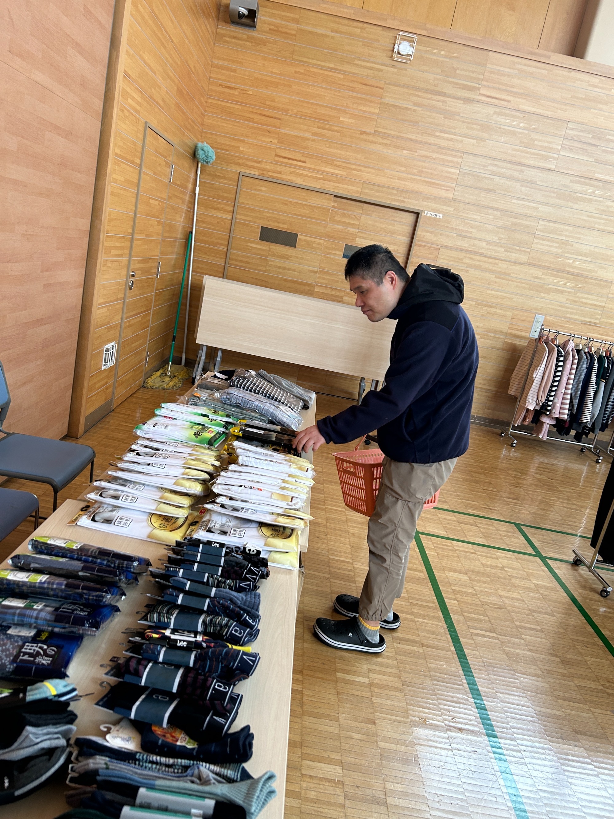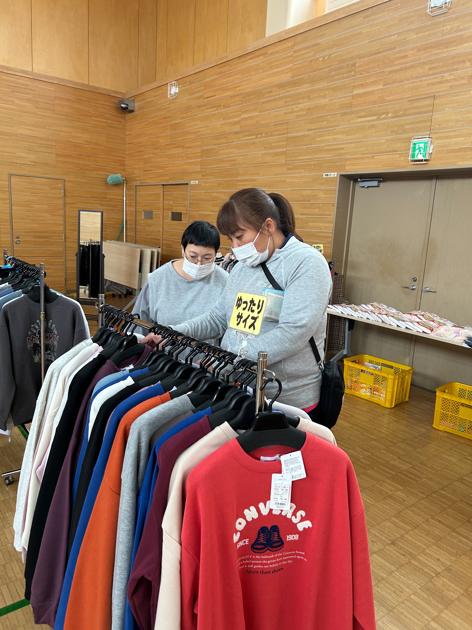 地域交流ホームに品物をひろげてお店みたいですね。さて、お気に入りの服は買えたでしょうか?