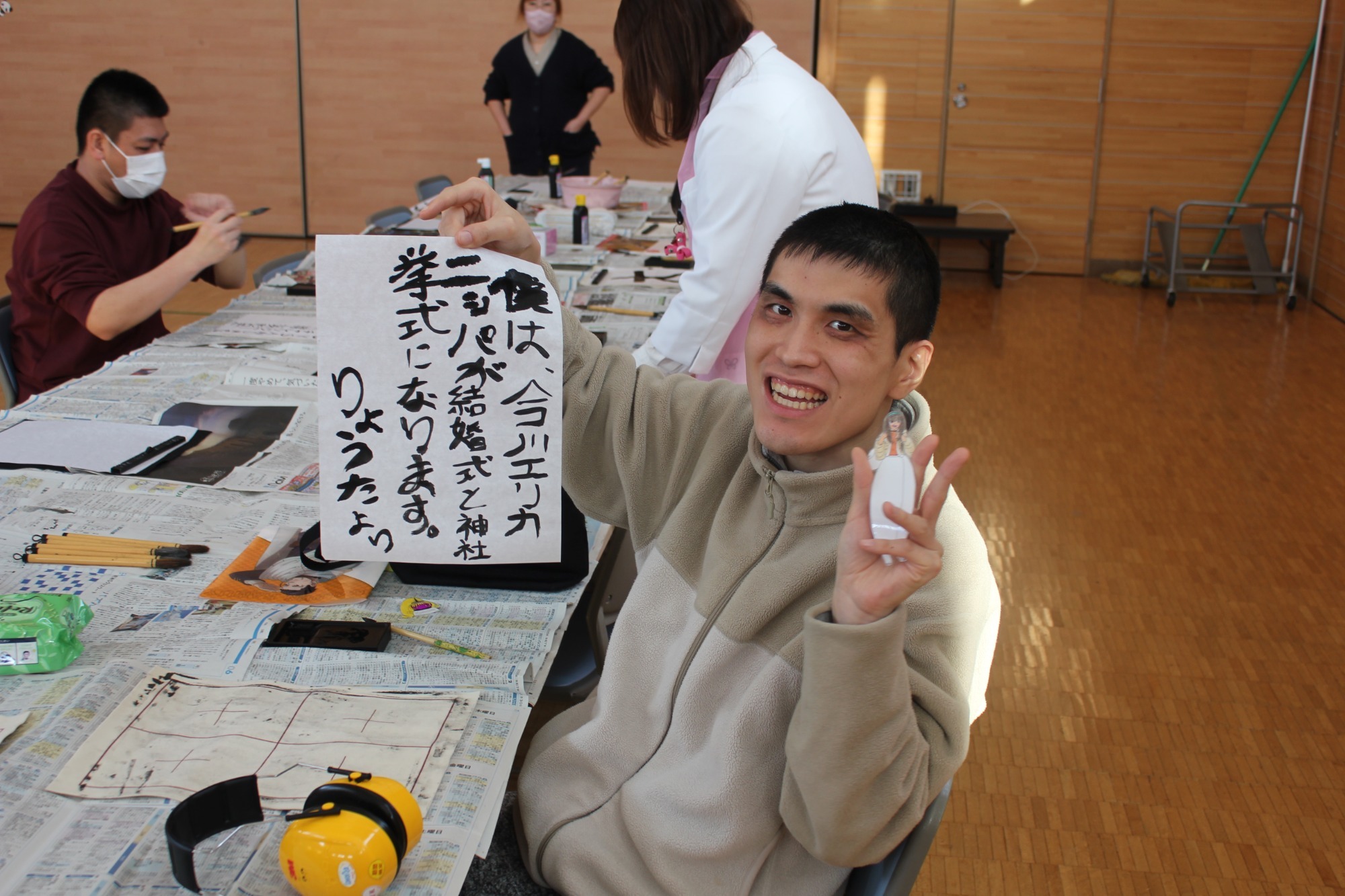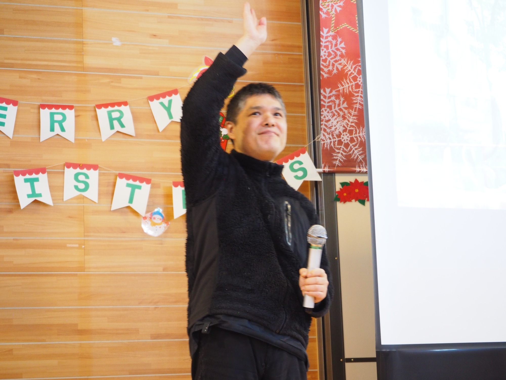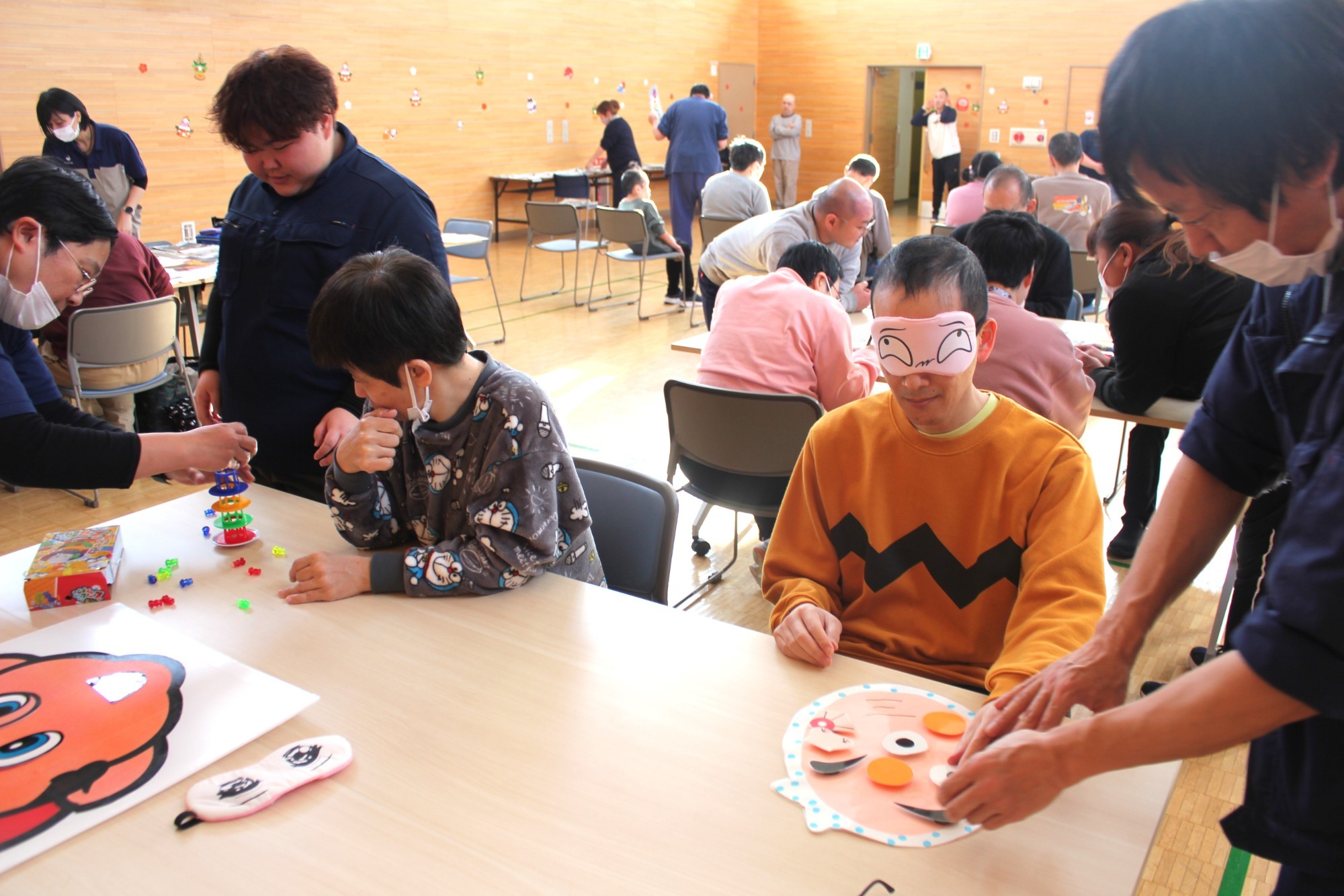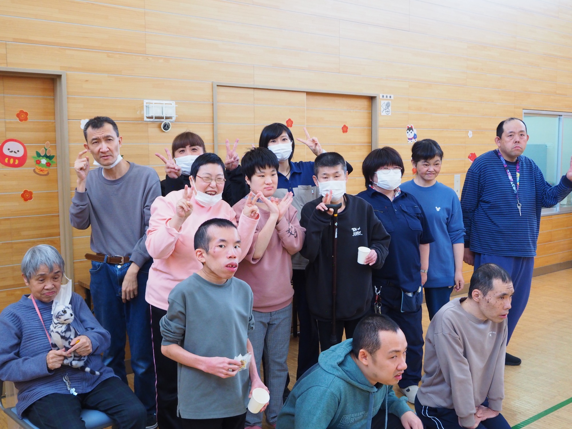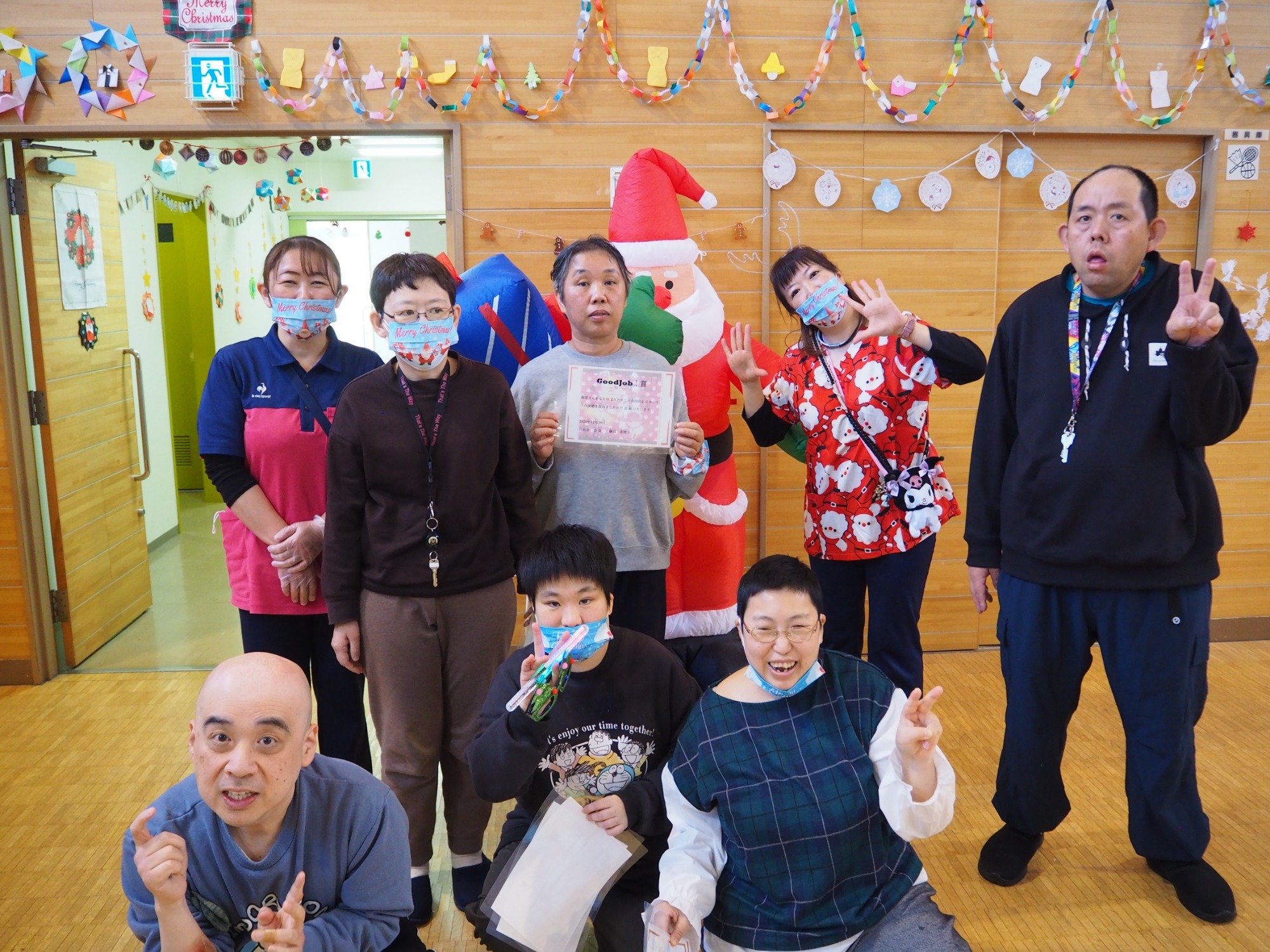まずは全員でダンス。そして一人ひとりにプレゼント贈呈という流れでした。単にイベントというよりは職員と利用者の皆さんが楽しんでいるようすが伝わってきて、いろんな意味で心あたたまる一日でした。