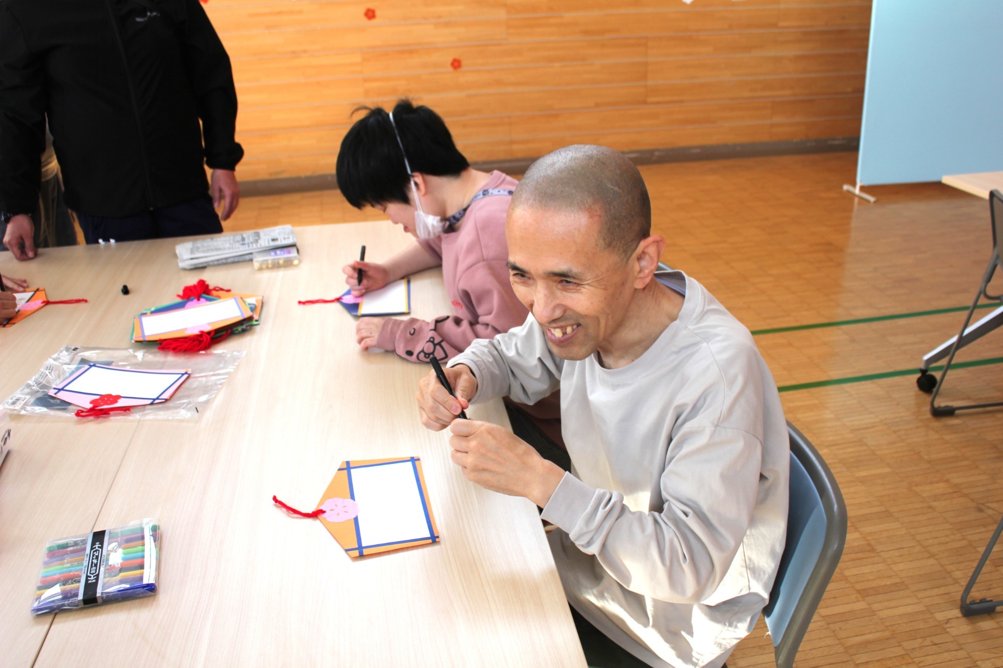 ふれあいの苑では恒例の新年会を行いました。床の上かるた、書初め、福笑い、絵馬つくりなど利用者様と職員で楽しみました。新年早々施設のボイラーが不調となり寒々とした年明けだったにも関わらず、施設の中はお正月モードに飾りつけされて、皆さんの笑顔がたくさん見られました。今年もみんなで元気に、楽しく過ごしていきたいと思います。ご家族、関係機関の皆様もご健勝にてご活躍ください。