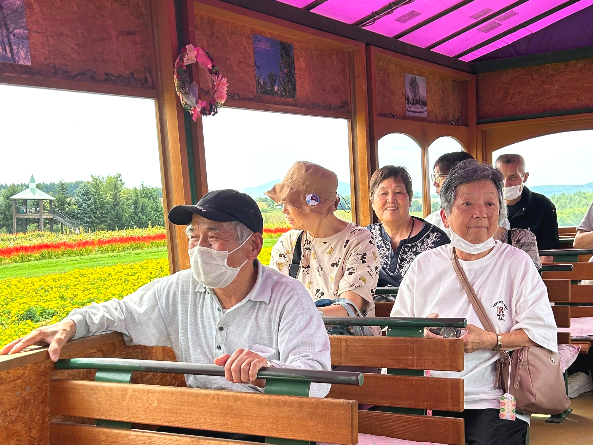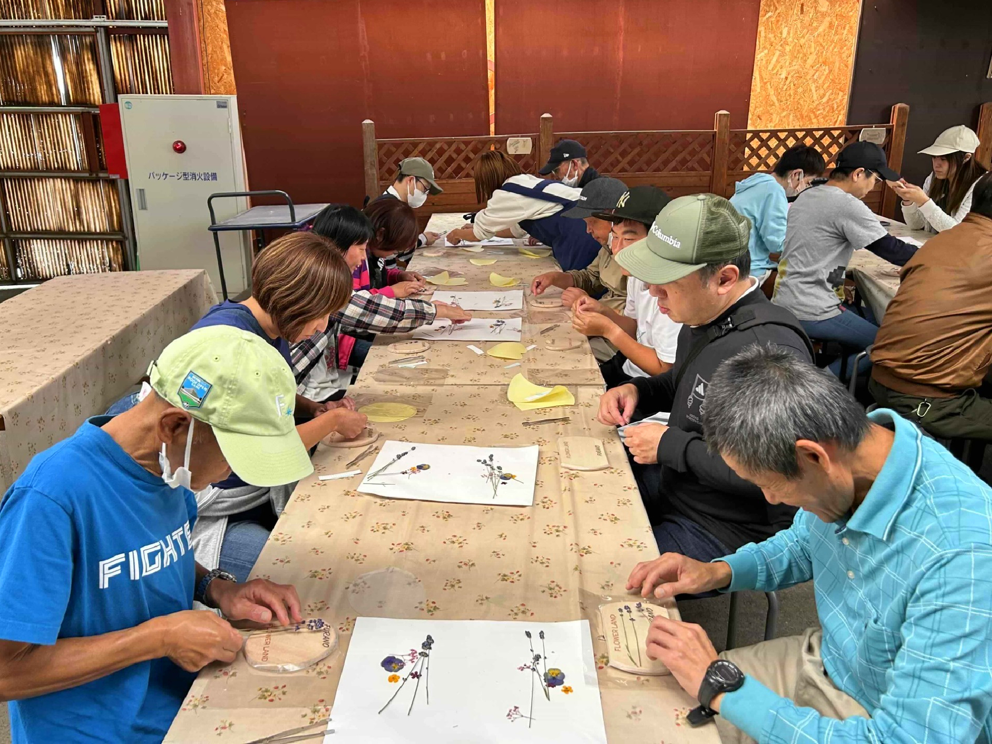 晴天に恵まれた素晴らしい旅行日和に、皆さん個性豊かな押し花アートを楽しみました。