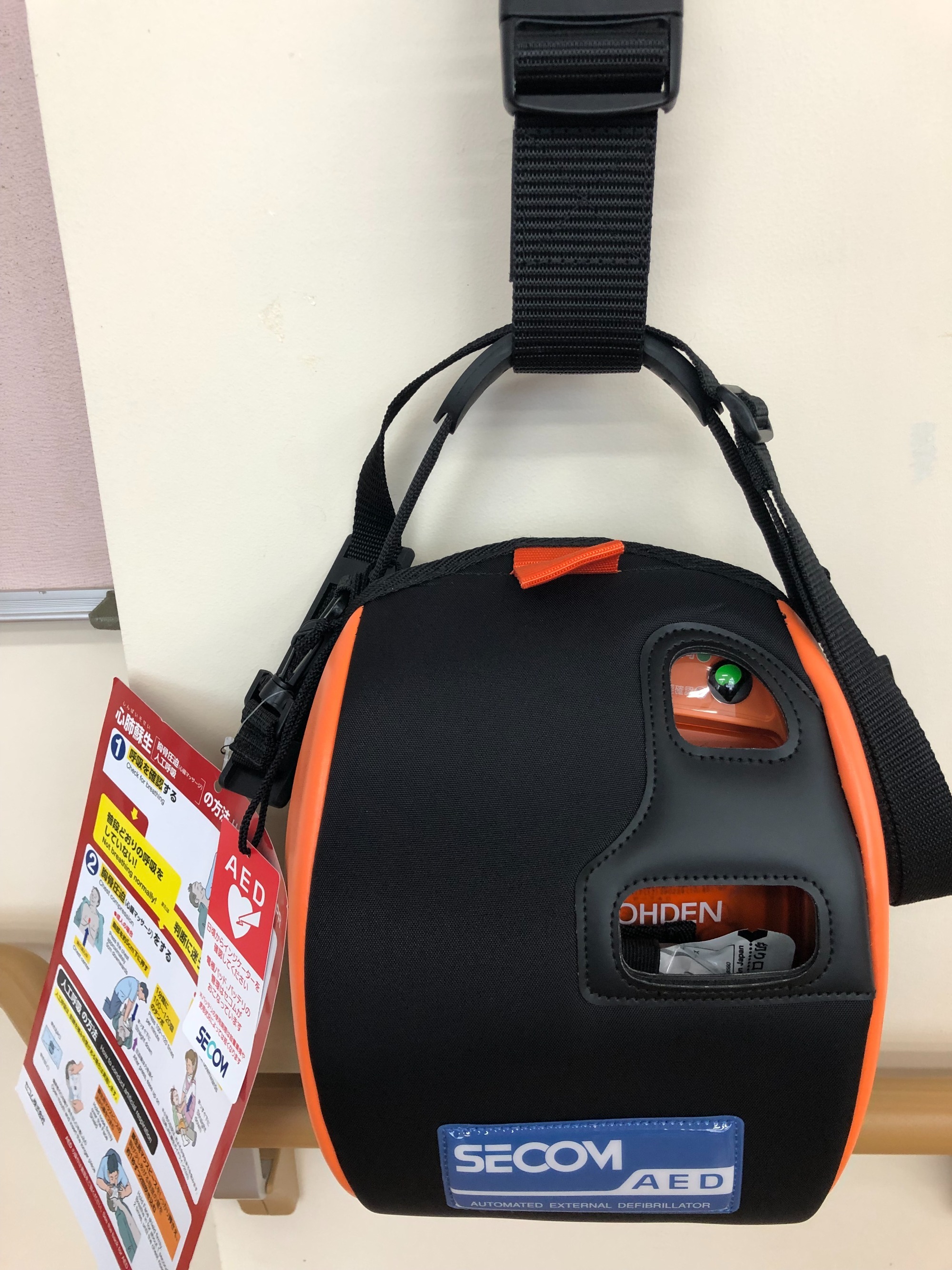 今年1月より新篠津福祉園内にAED(自動体外式除細動器)を設置いたしました。