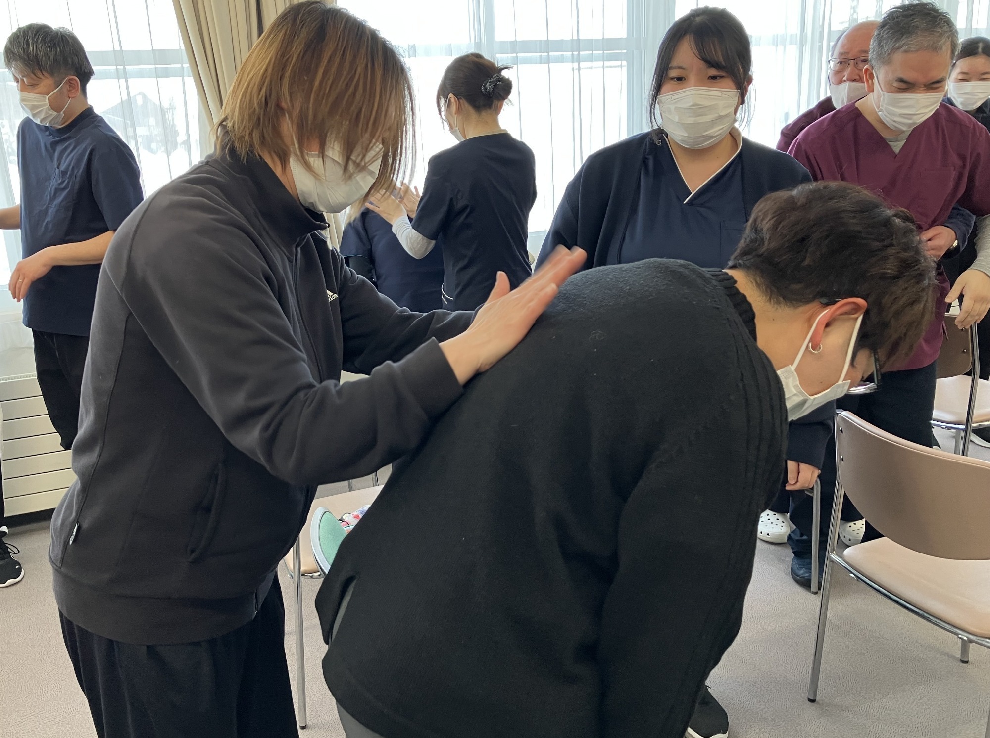 職員同士でペアを組み実際に行うことで疑問を解決、貴重な学びの機会になりました。