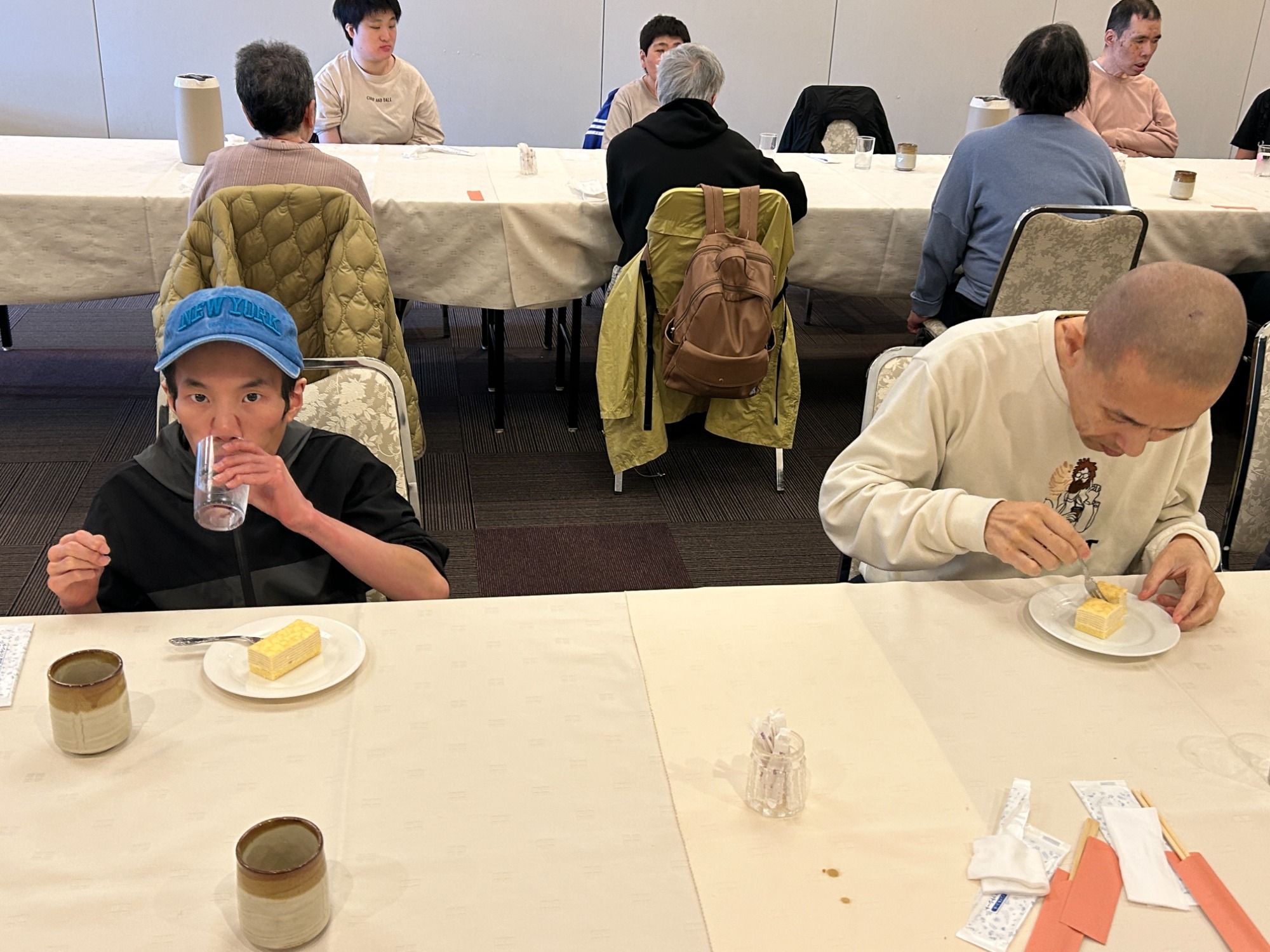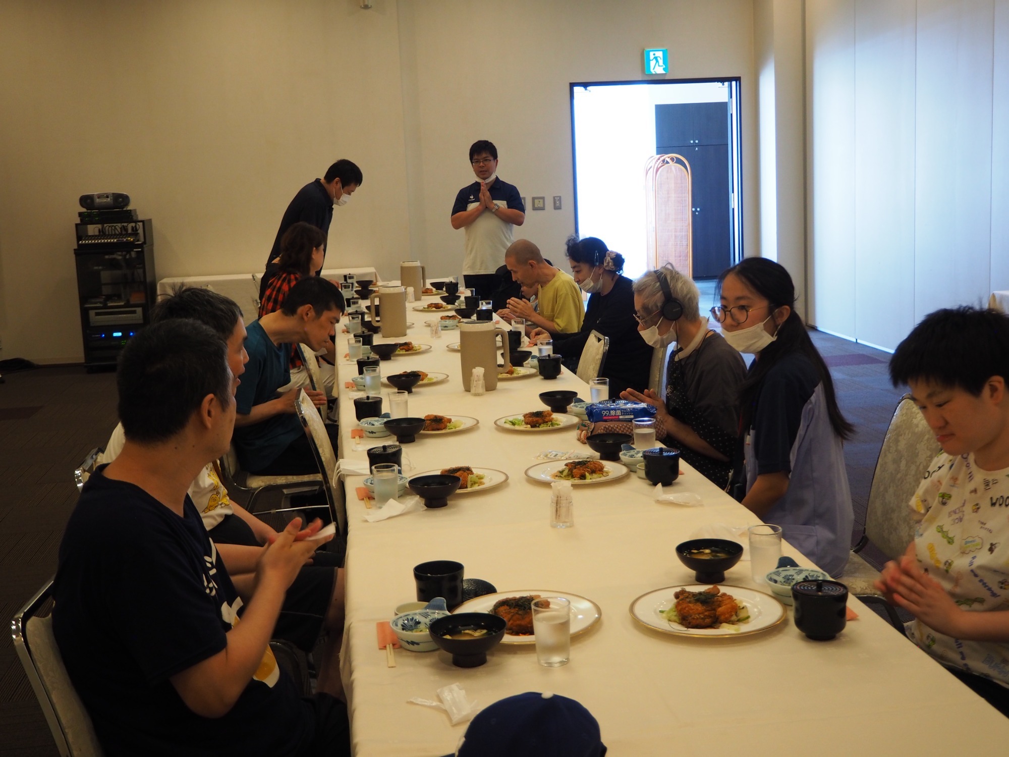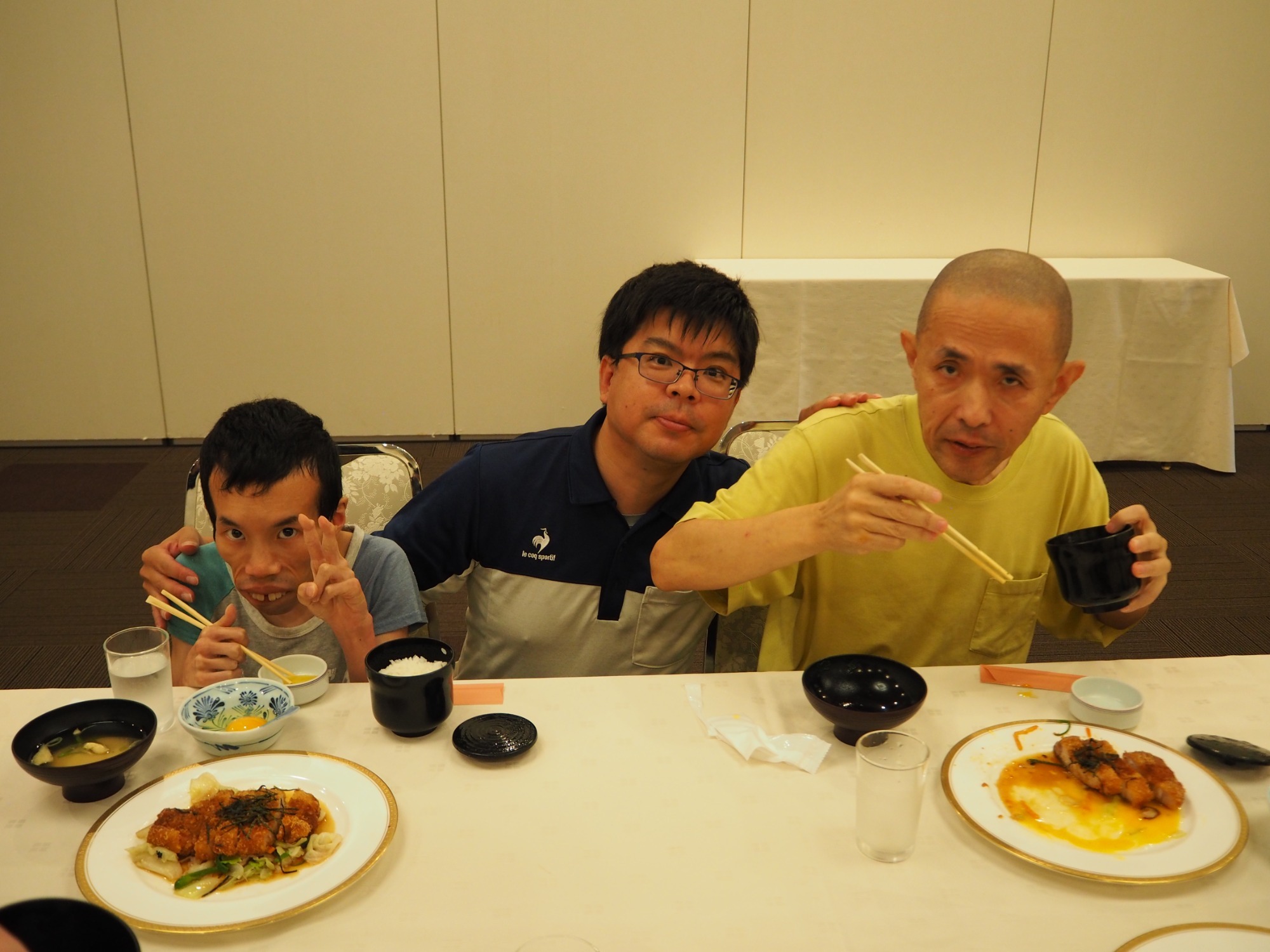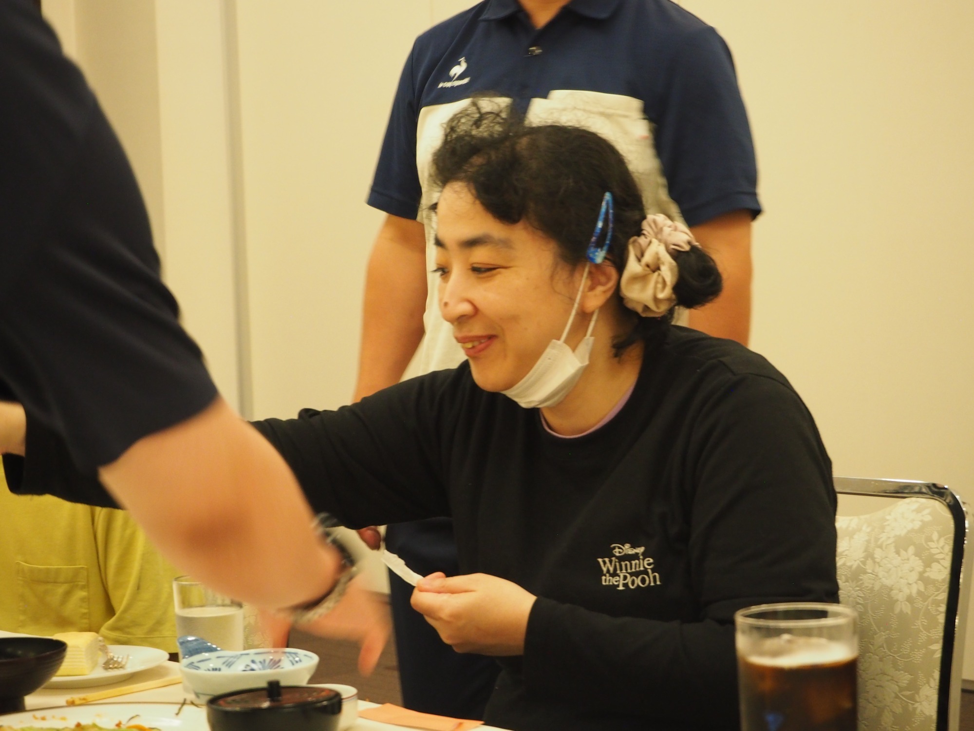 お盆の行事として当別町田西会館でお食事会をしました。春は海鮮丼だったので今回はご当地メニューの当別とんかつとケーキセットをチョイス。「私が選んだんだよ!」とうれしそうな利用者Hさん、ナイスです。皆さん「おいしい!」と大好評でした。詳しく言えばお肉は当別浅野ポーク。厚くて柔らいお肉にカリッとした衣がついて、香りの良いにんにく醤油で味付けされています。小鉢に卵をといてお肉をつけながら食べるというスタイルが新鮮です。この日はお盆のせいかお店の駐車場が満車になるほどお客さんも多く、当別の老舗の繁盛ぶりを感じました。行き帰りの車窓からは稲穂がだいぶ実って頭を下げている景色か見えました。まだ暑い日は続くようですが「夏に励みて豊穣の秋近し」です。