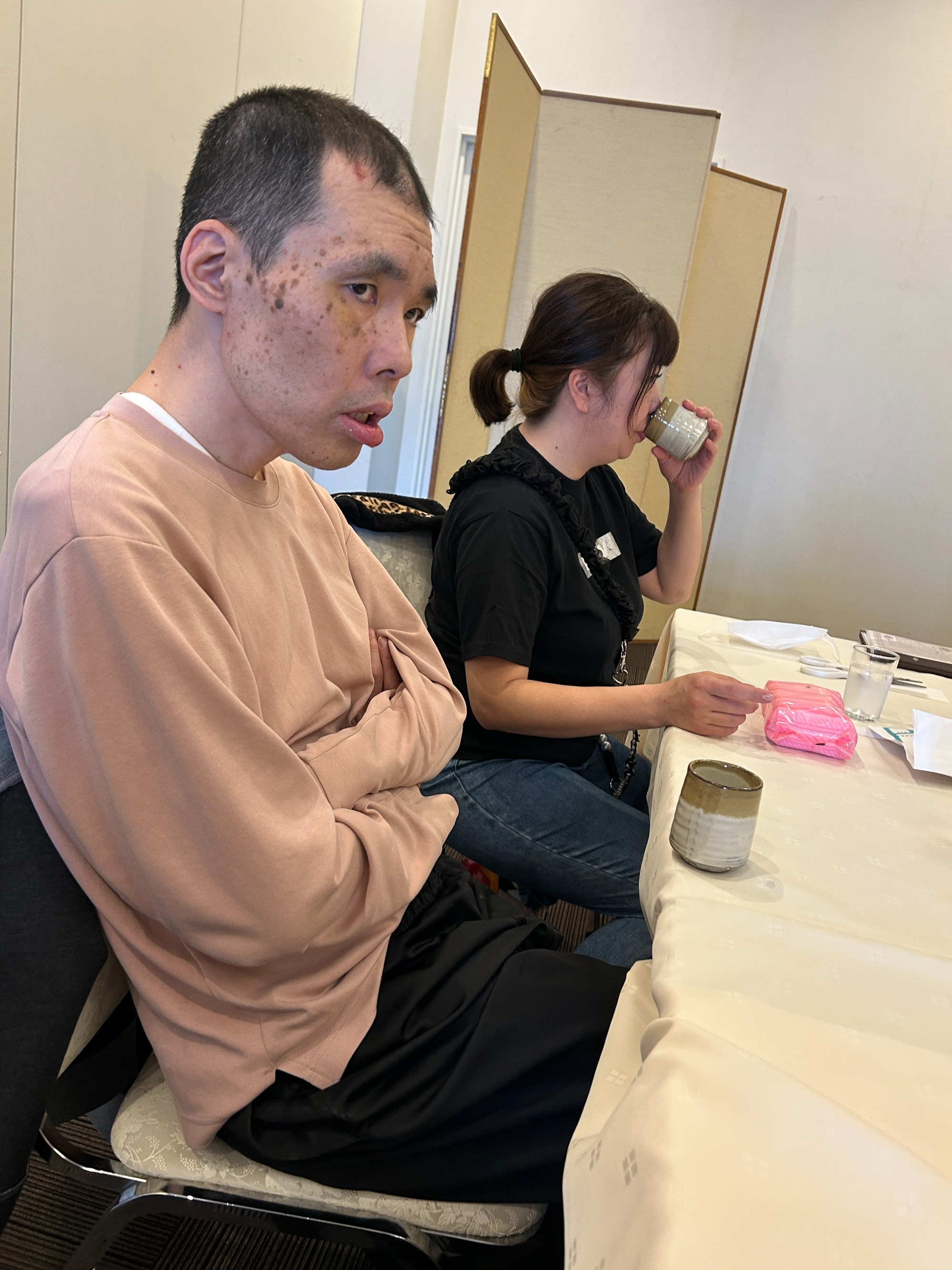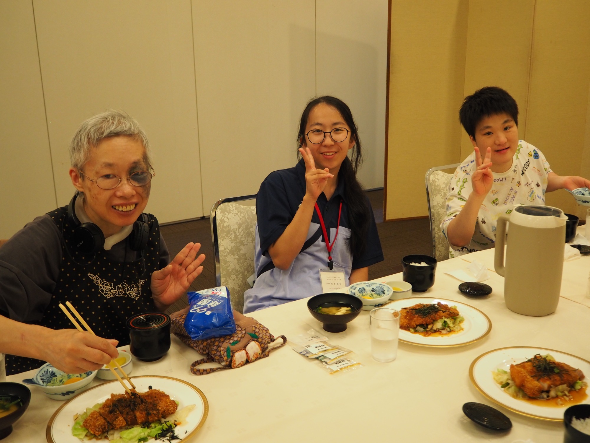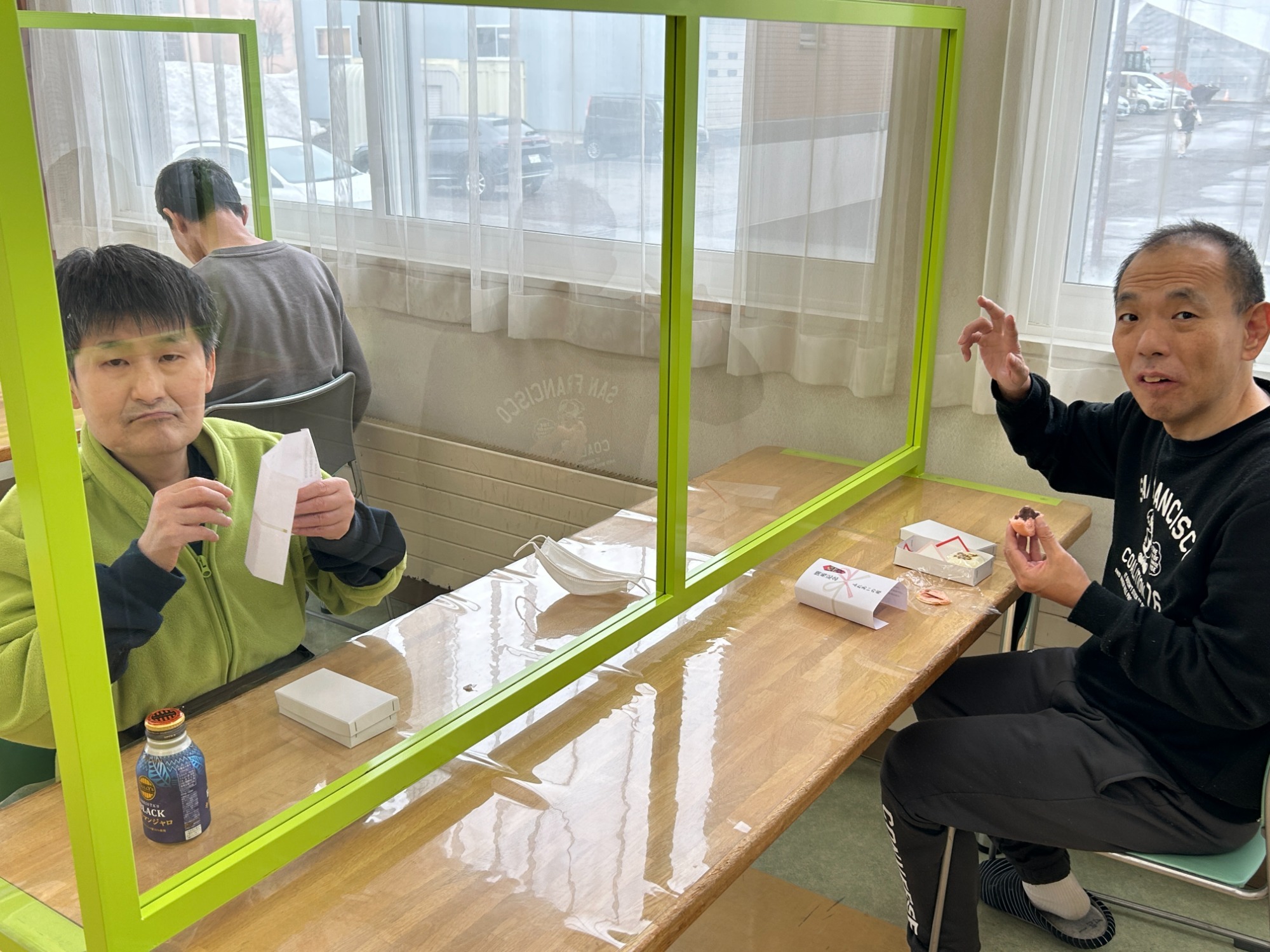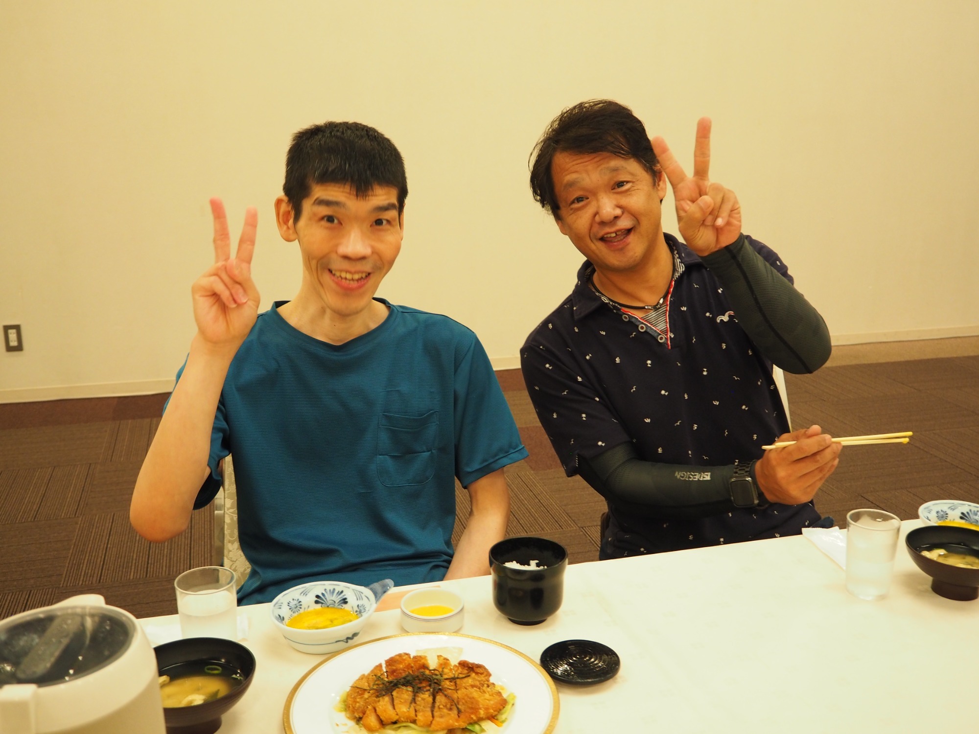 お盆の行事として当別町田西会館でお食事会をしました。春は海鮮丼だったので今回はご当地メニューの当別とんかつとケーキセットをチョイス。「私が選んだんだよ!」とうれしそうな利用者Hさん、ナイスです。皆さん「おいしい!」と大好評でした。詳しく言えばお肉は当別浅野ポーク。厚くて柔らいお肉にカリッとした衣がついて、香りの良いにんにく醤油で味付けされています。小鉢に卵をといてお肉をつけながら食べるというスタイルが新鮮です。この日はお盆のせいかお店の駐車場が満車になるほどお客さんも多く、当別の老舗の繁盛ぶりを感じました。行き帰りの車窓からは稲穂がだいぶ実って頭を下げている景色か見えました。まだ暑い日は続くようですが「夏に励みて豊穣の秋近し」です。