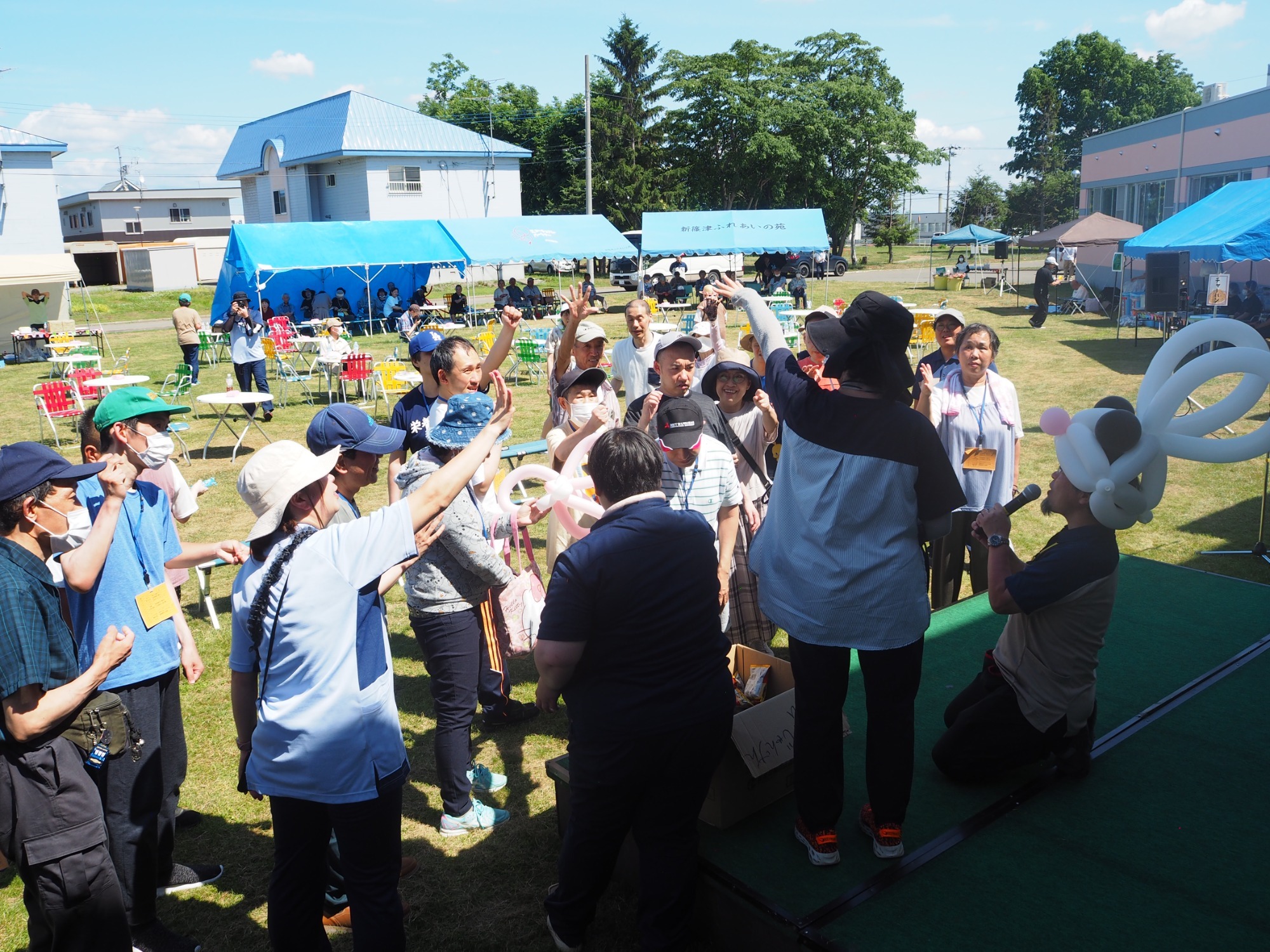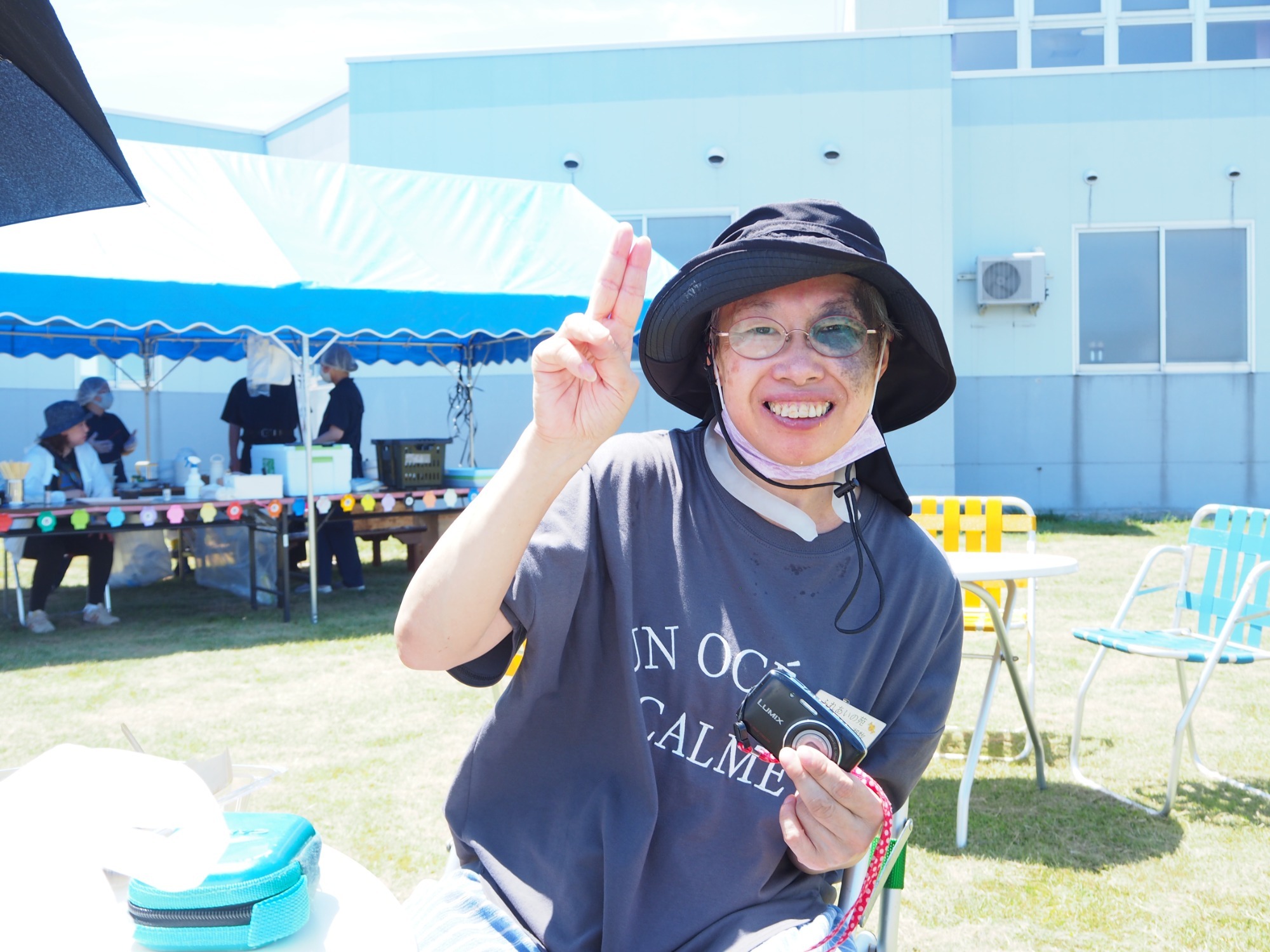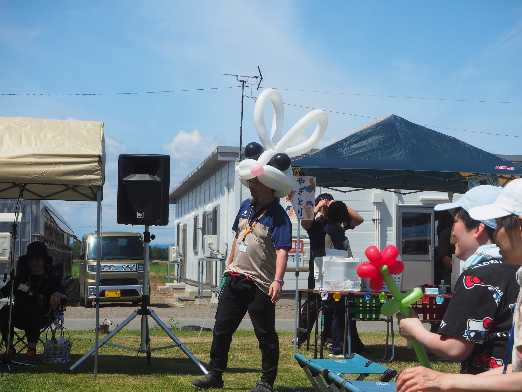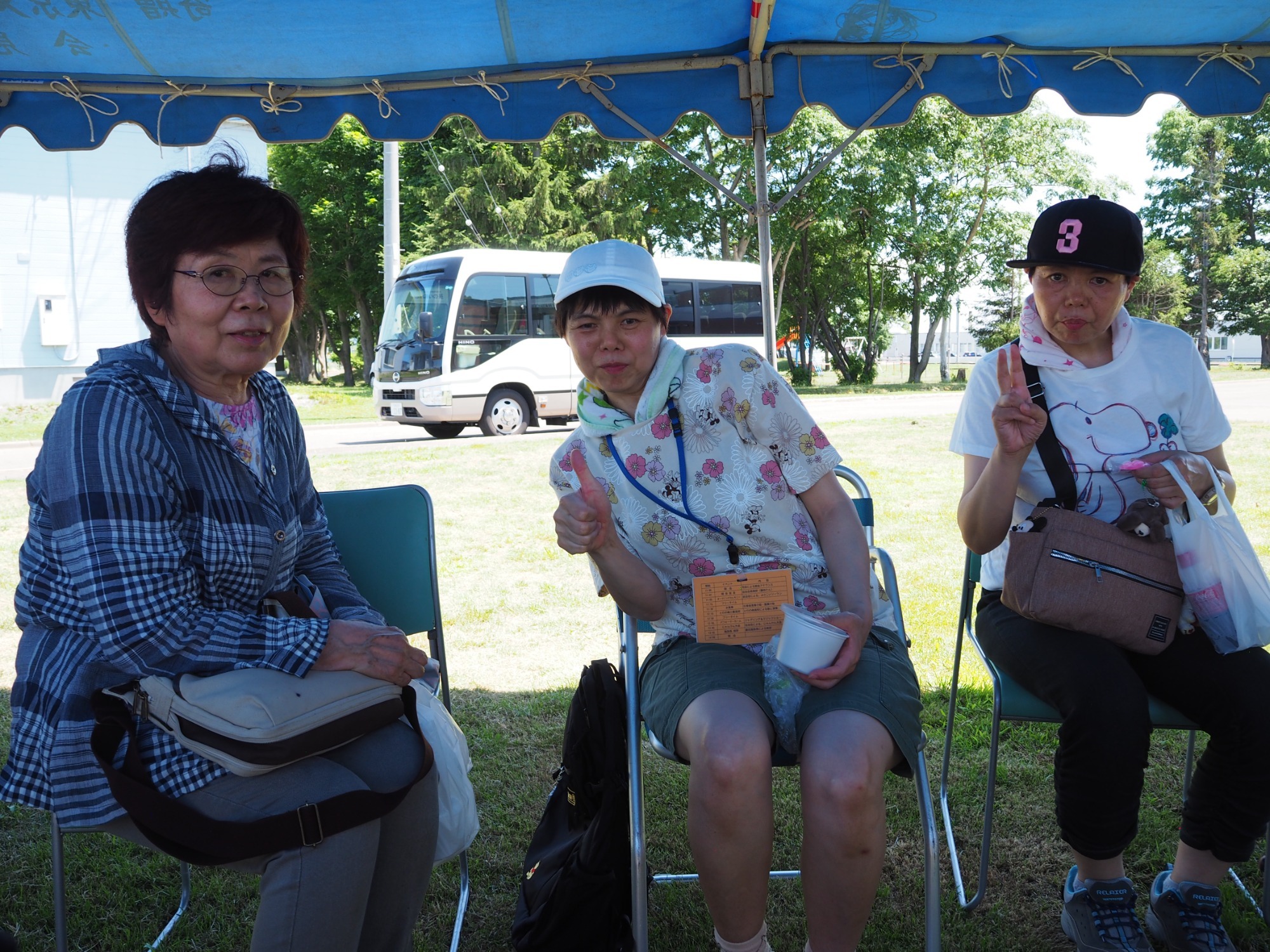 今年のふれあい祭りは猛暑日の開催となってしまいました。32度を超える気温の中、祭りにご参加いただいたご家族の皆様、ボランティアの皆様、とわの森三愛高校の皆様、パフォーマーカームさん、そして職員の皆さん、たいへん有難うございました!暑すぎて体調を崩す方がでないかとても心配でしたが、そんな中でも利用者の皆さんの笑顔がいつにも増してキラキラしていてとても感動しました。