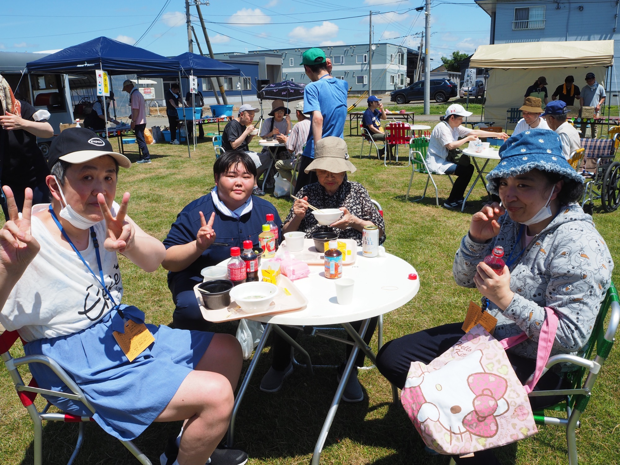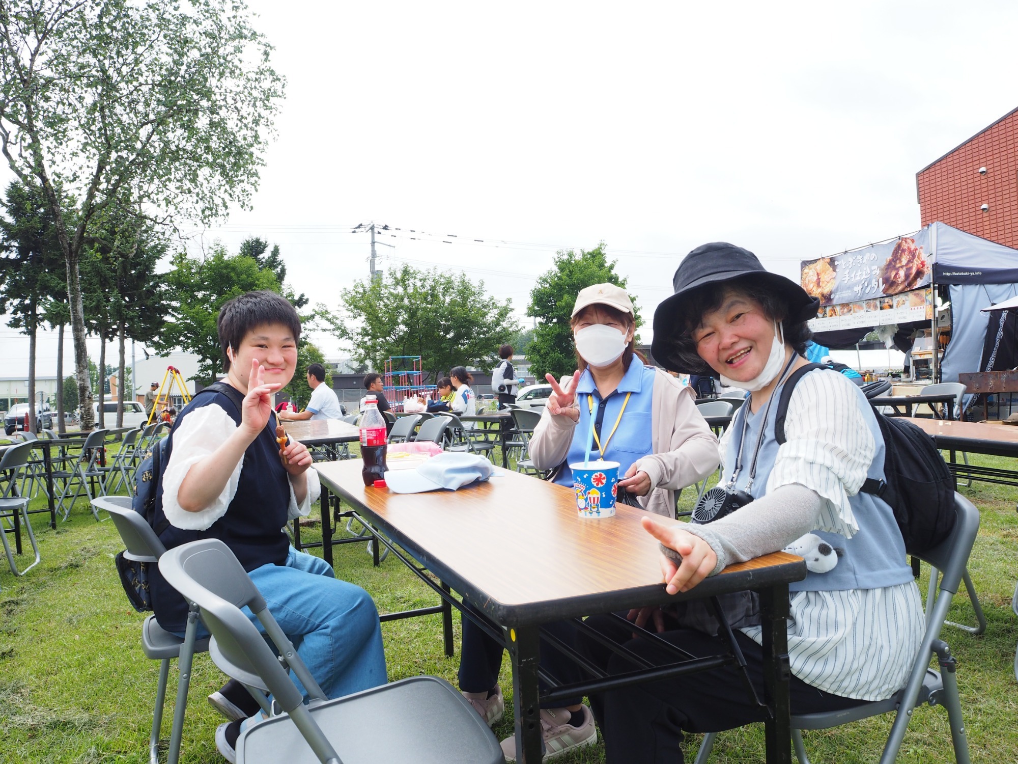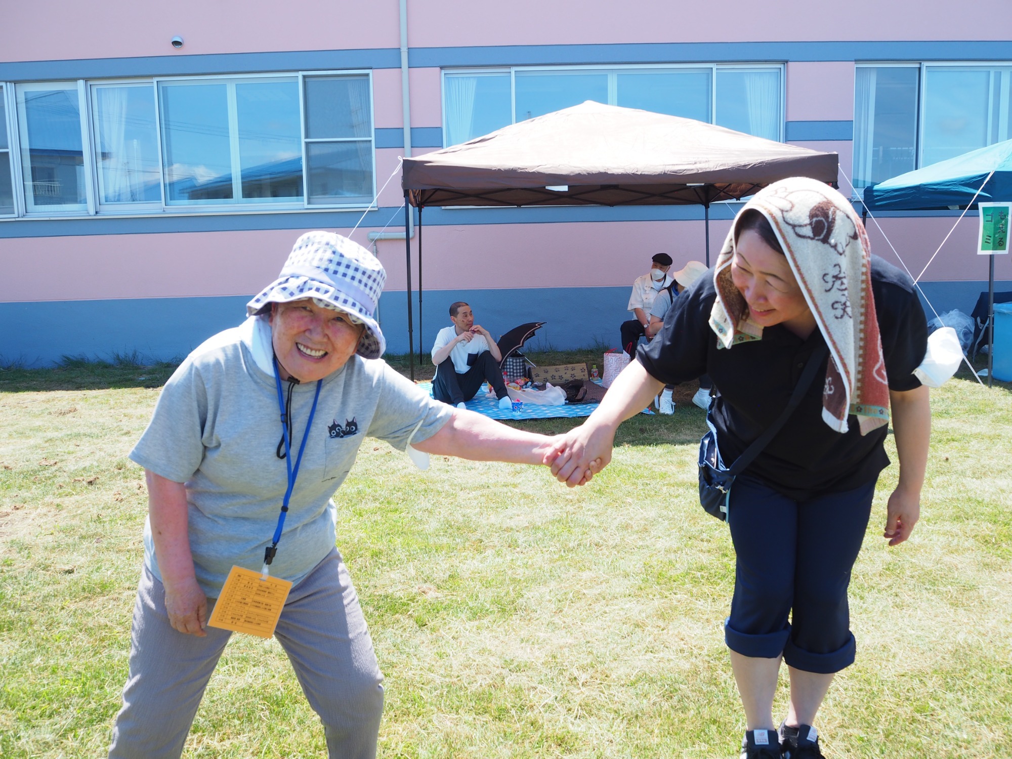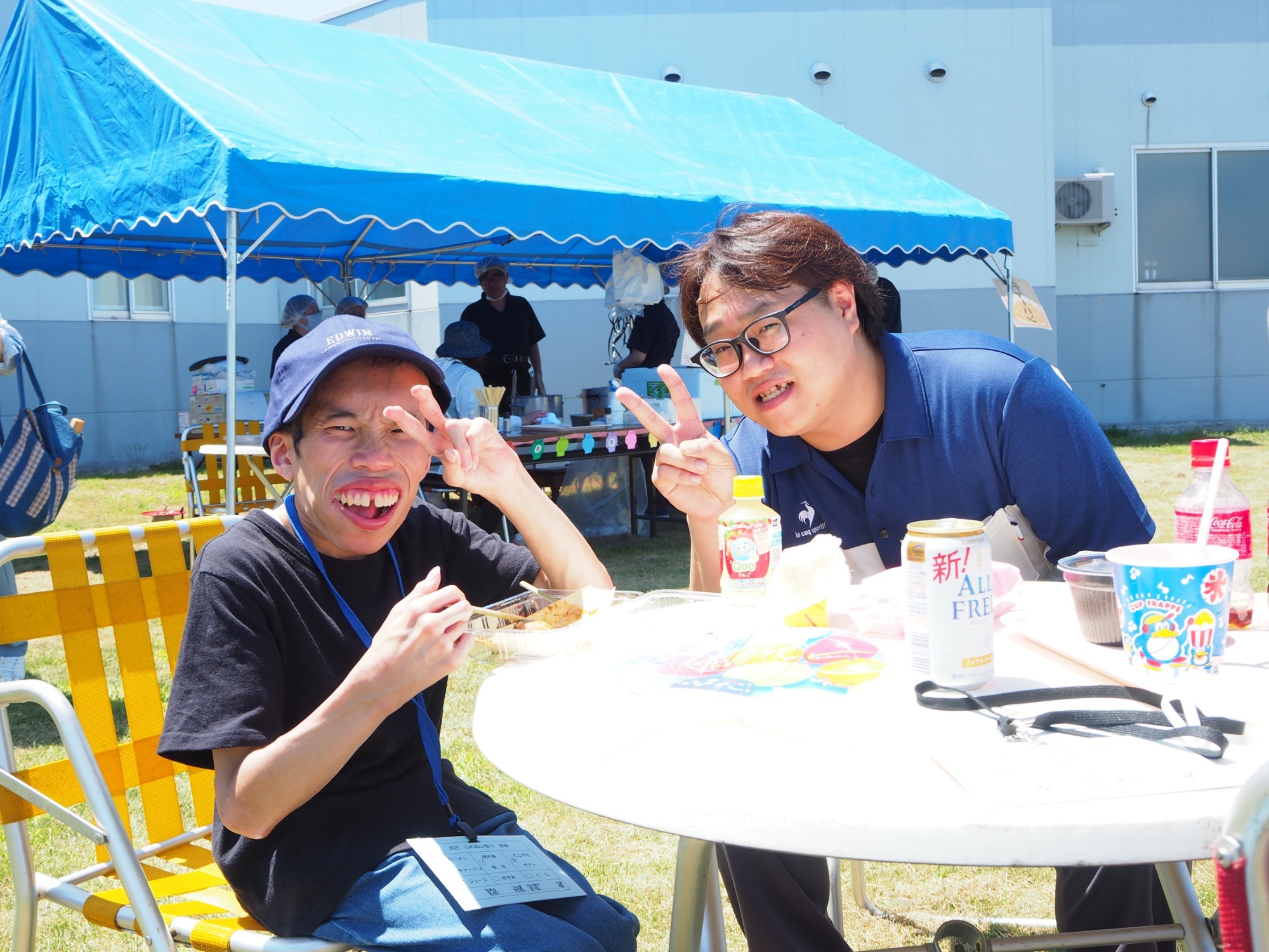今年のふれあい祭りは猛暑日の開催となってしまいました。32度を超える気温の中、祭りにご参加いただいたご家族の皆様、ボランティアの皆様、とわの森三愛高校の皆様、パフォーマーカームさん、そして職員の皆さん、たいへん有難うございました!暑すぎて体調を崩す方がでないかとても心配でしたが、そんな中でも利用者の皆さんの笑顔がいつにも増してキラキラしていてとても感動しました。