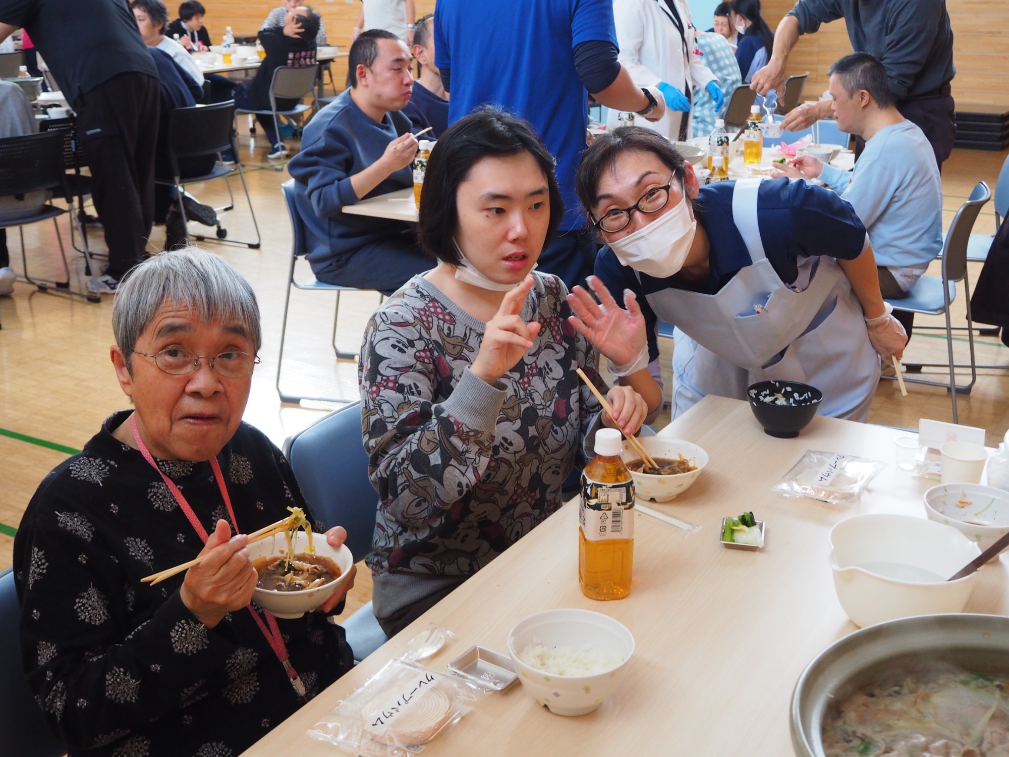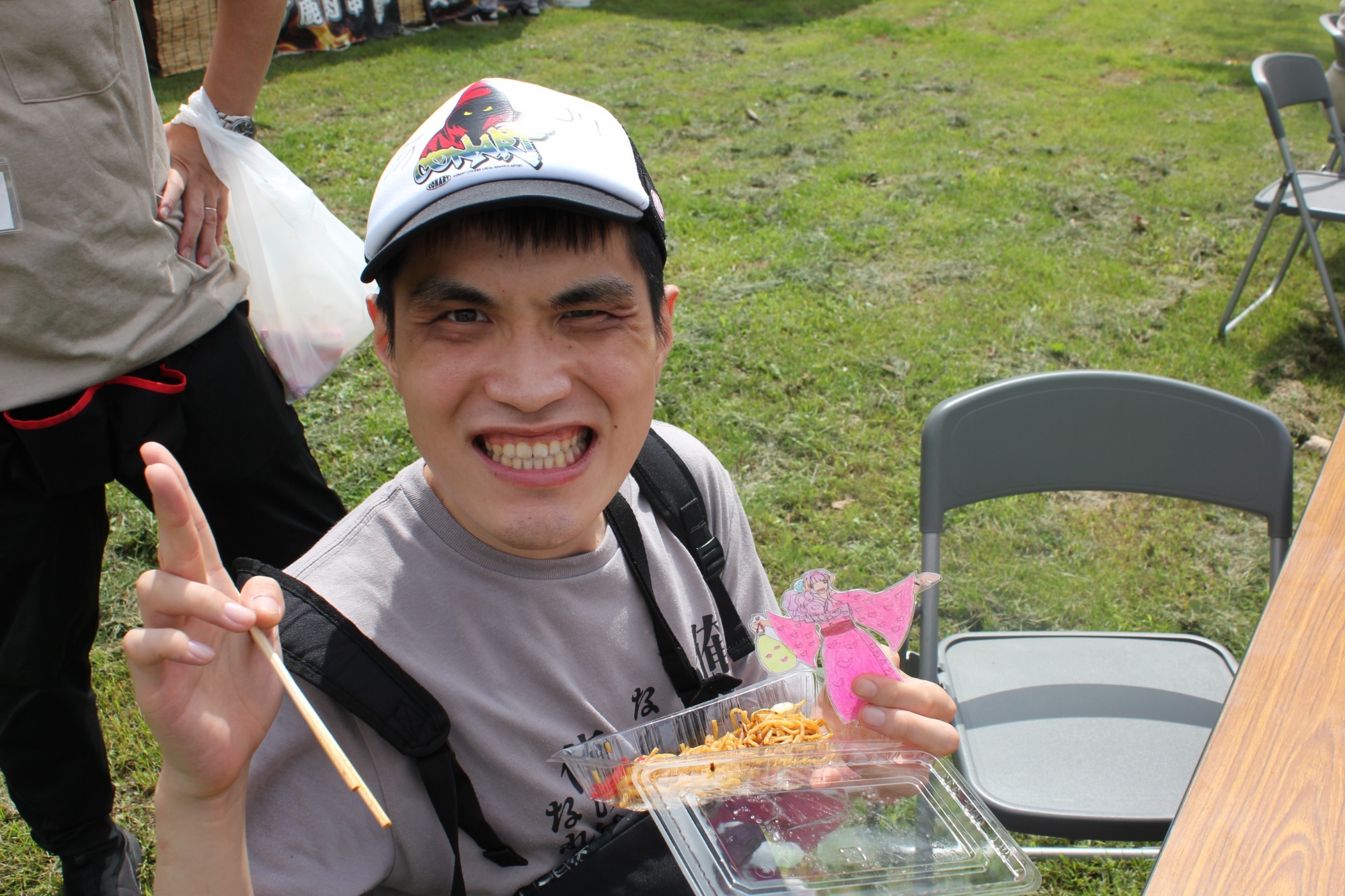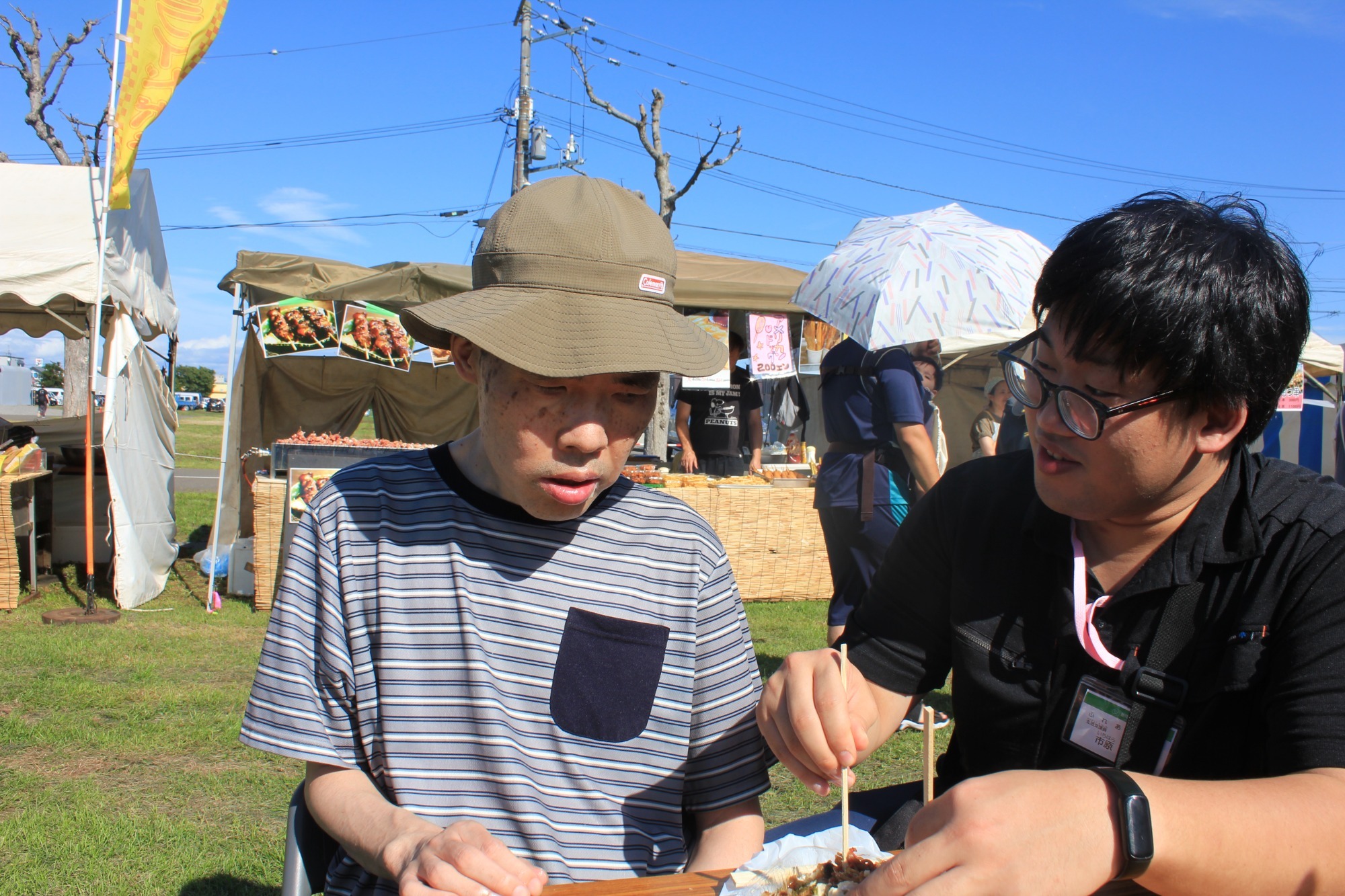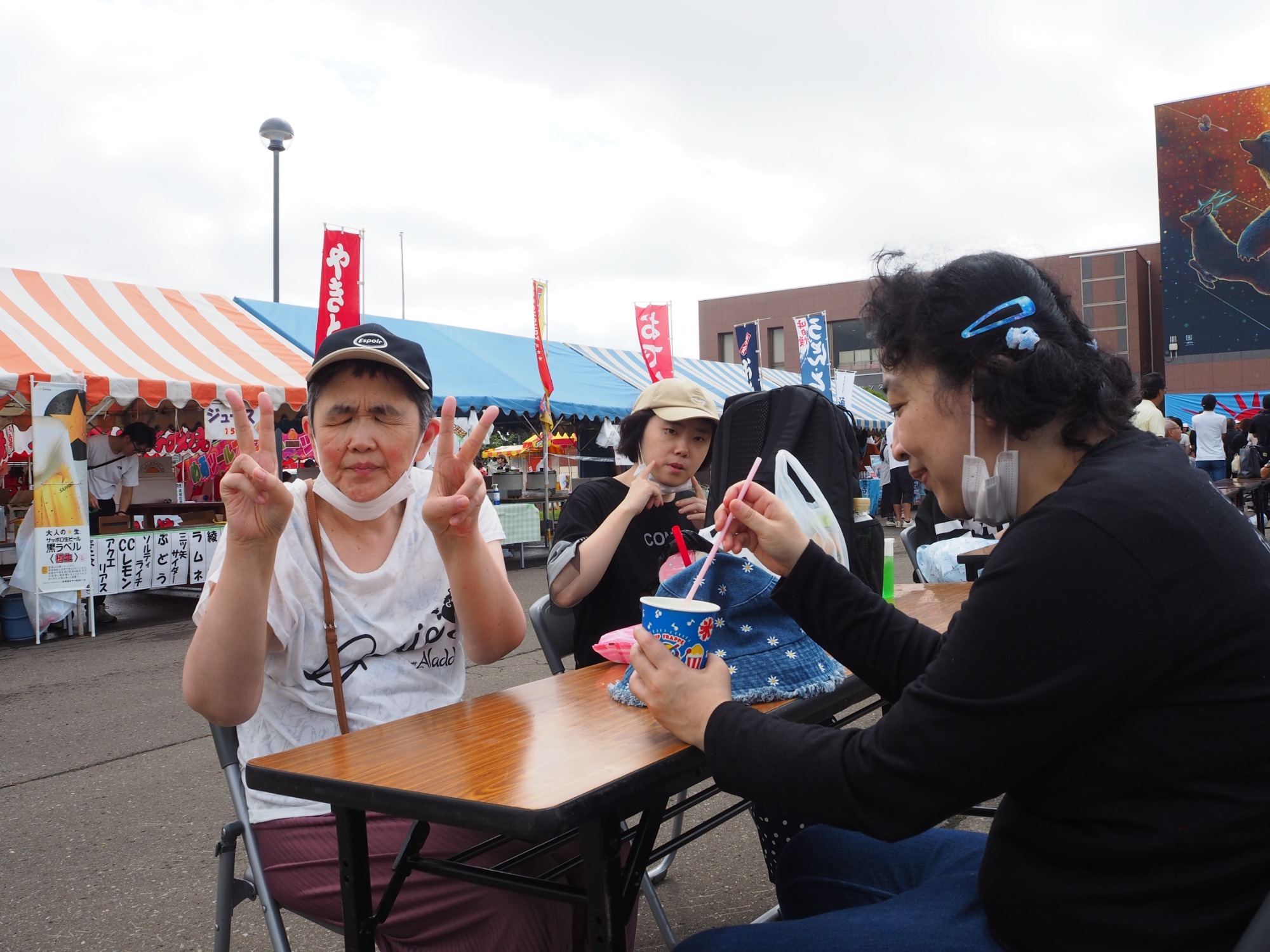 今年のふれあい祭りは猛暑日の開催となってしまいました。32度を超える気温の中、祭りにご参加いただいたご家族の皆様、ボランティアの皆様、とわの森三愛高校の皆様、パフォーマーカームさん、そして職員の皆さん、たいへん有難うございました!暑すぎて体調を崩す方がでないかとても心配でしたが、そんな中でも利用者の皆さんの笑顔がいつにも増してキラキラしていてとても感動しました。