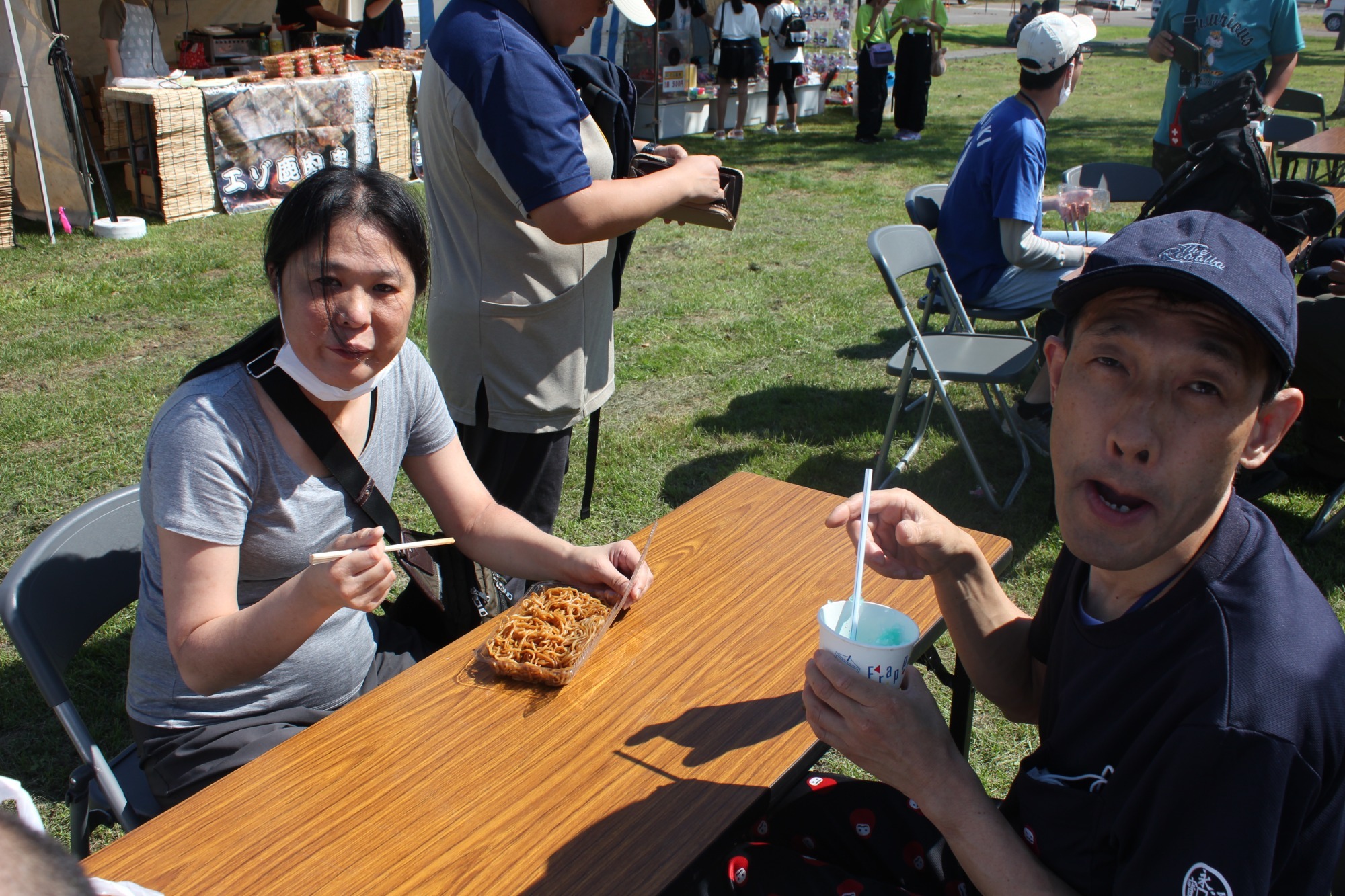 8月23日は第46回新しのつ青空まつりです。今年もふれあいの苑の皆さんで出かけて楽しんできました。出店がたくさんあっておいしそうなにおいがプンプン!たくさんの人出や楽しいアトラクションなどお祭りの活気が伝わってきました。