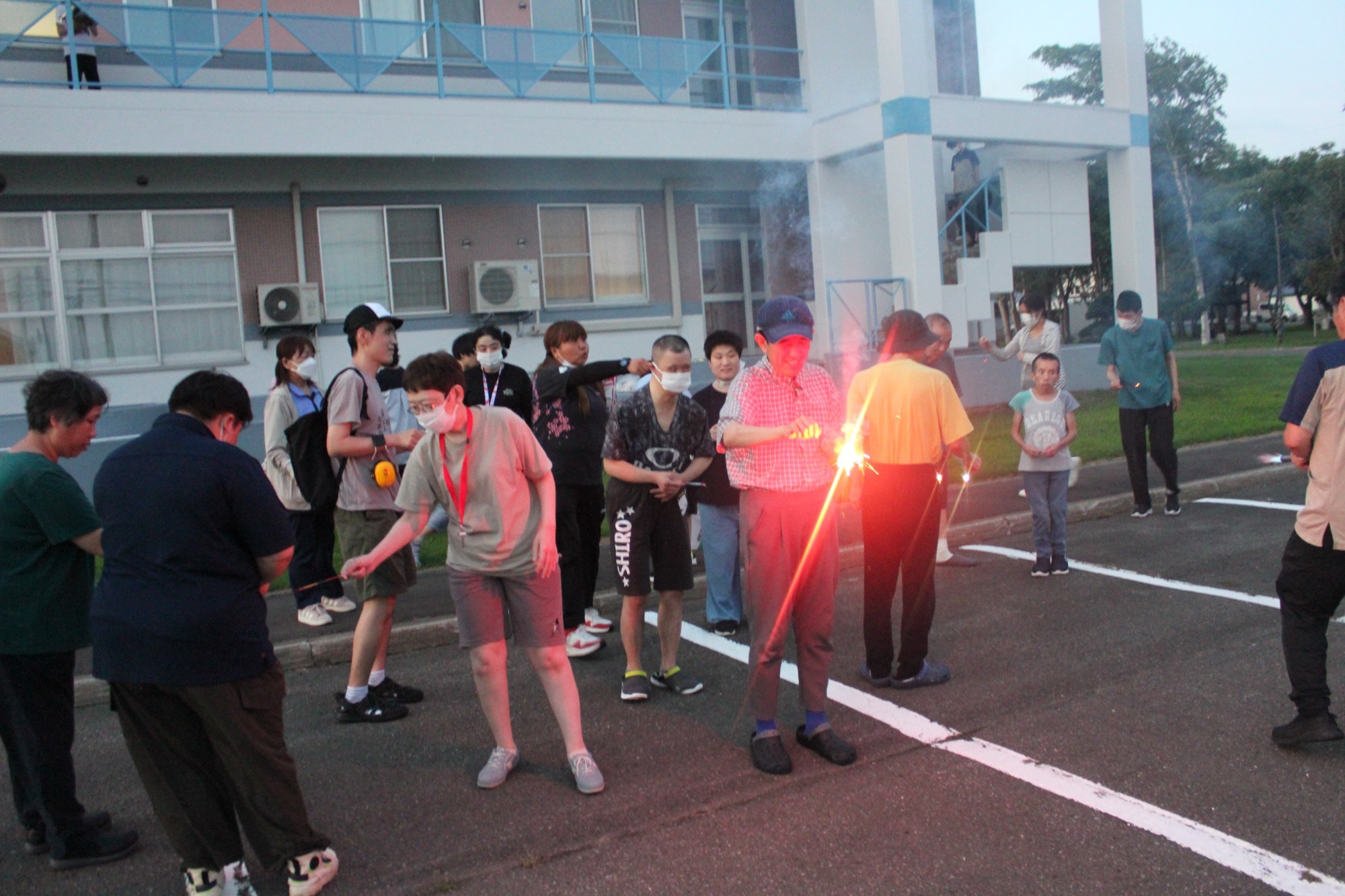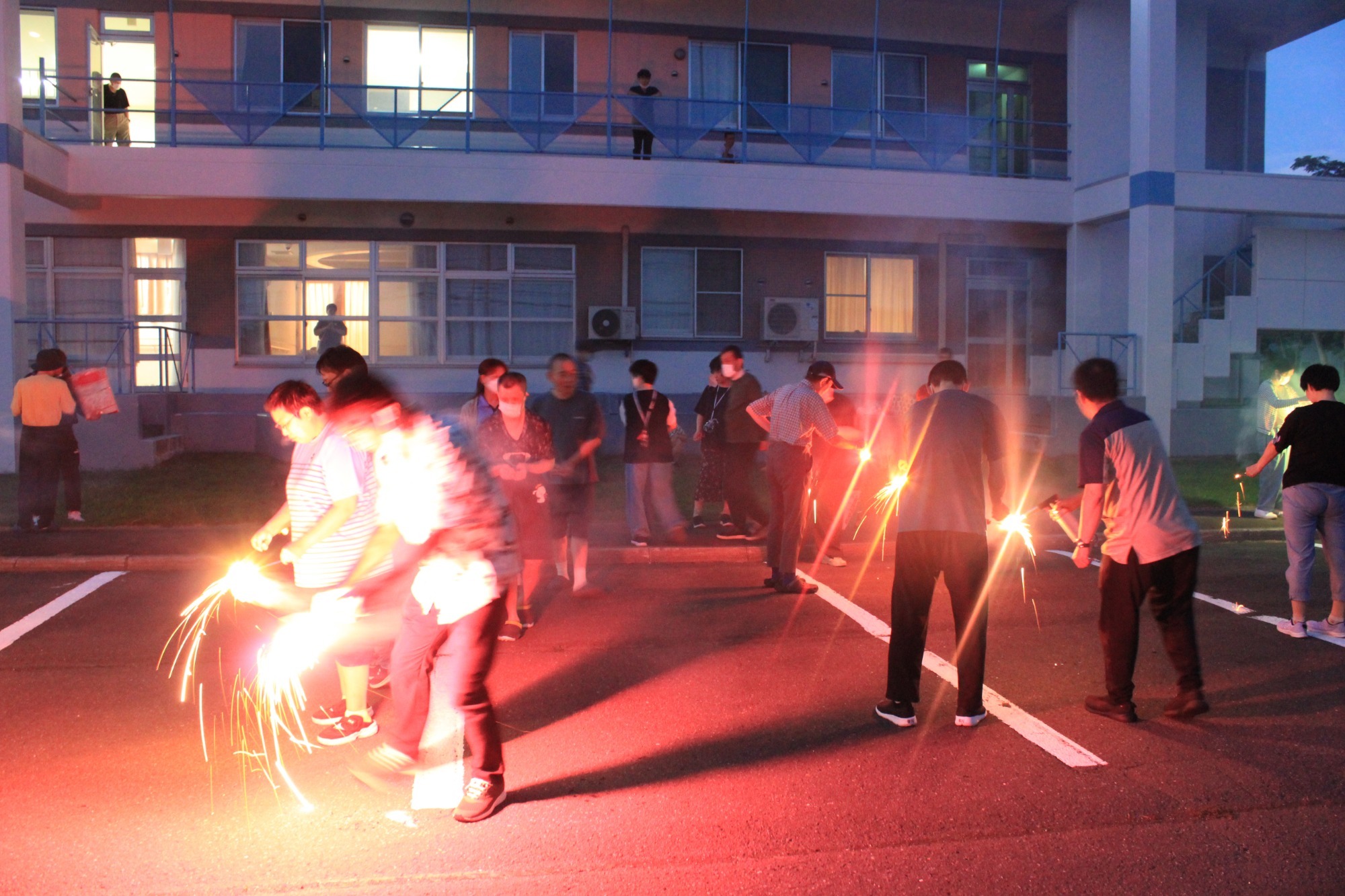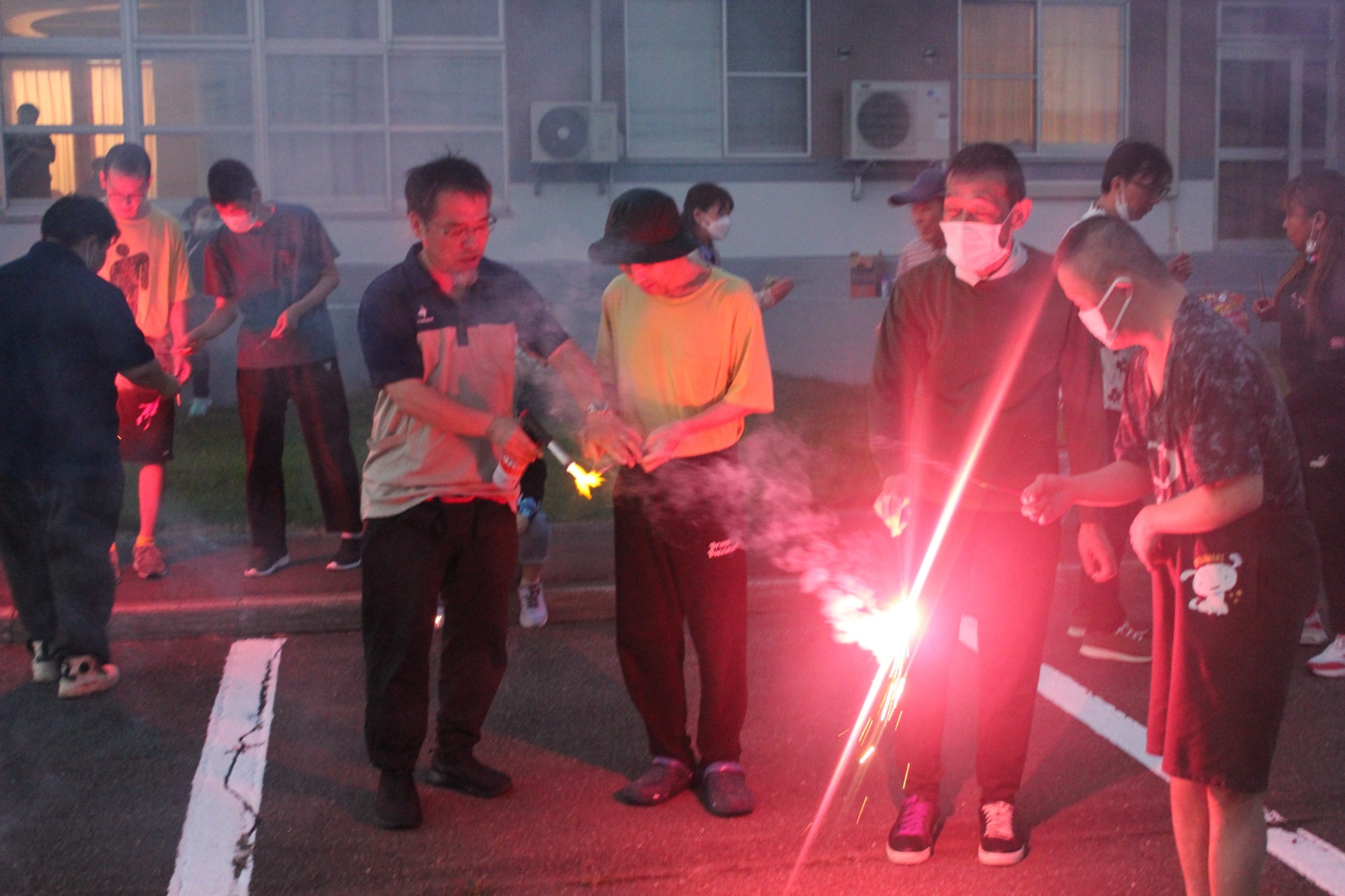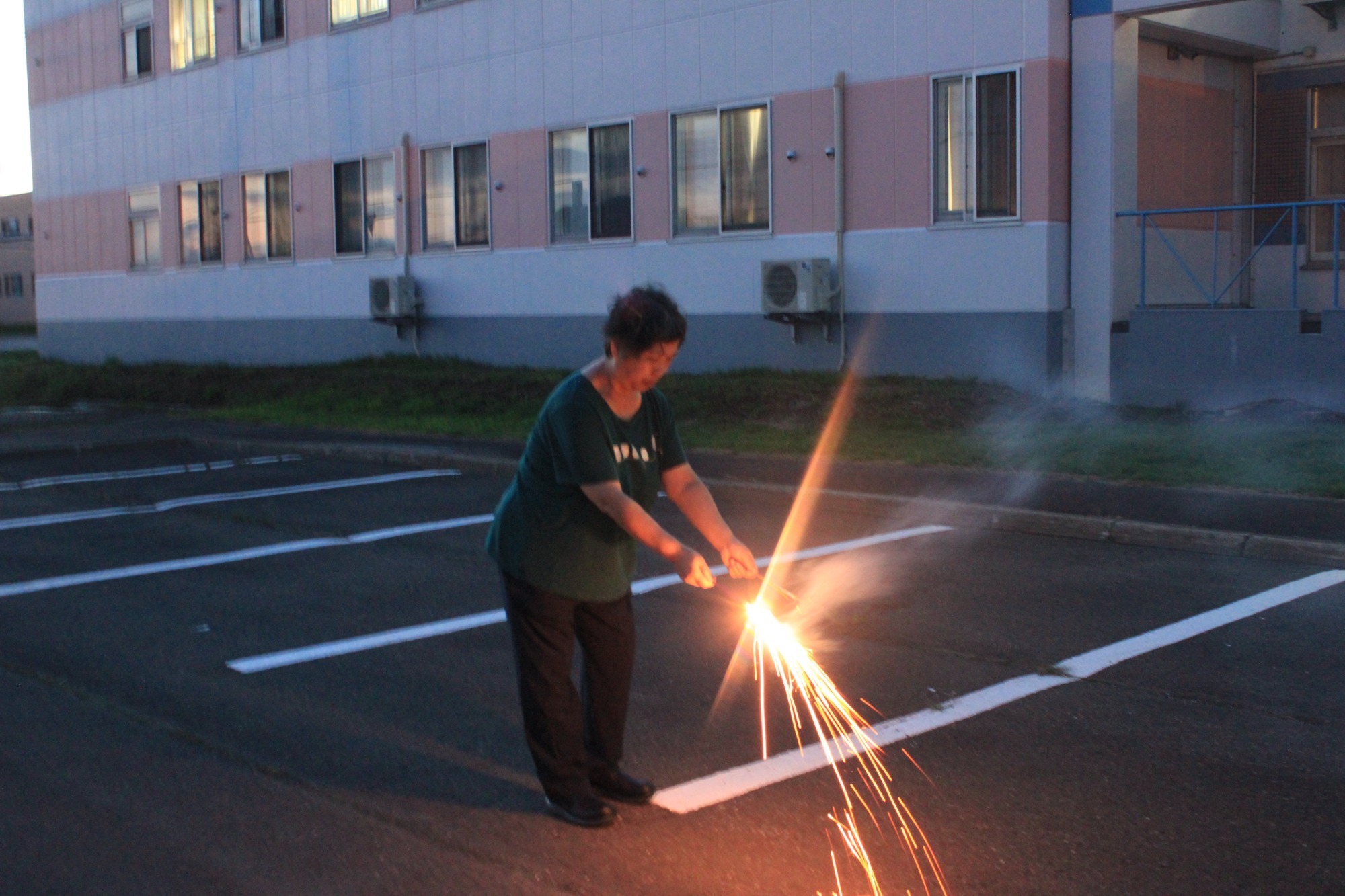 青空まつりの日は夕食後に施設の駐車場で花火をしました。この日は日中暑かったのですが夜には落ち着いてさわやかな風が吹いていました。お盆、お祭り、花火と夏の風物詩を過ぎれば初秋の兆しのはずですが、今年はまだしばらく暑い日が続くとの予報です。