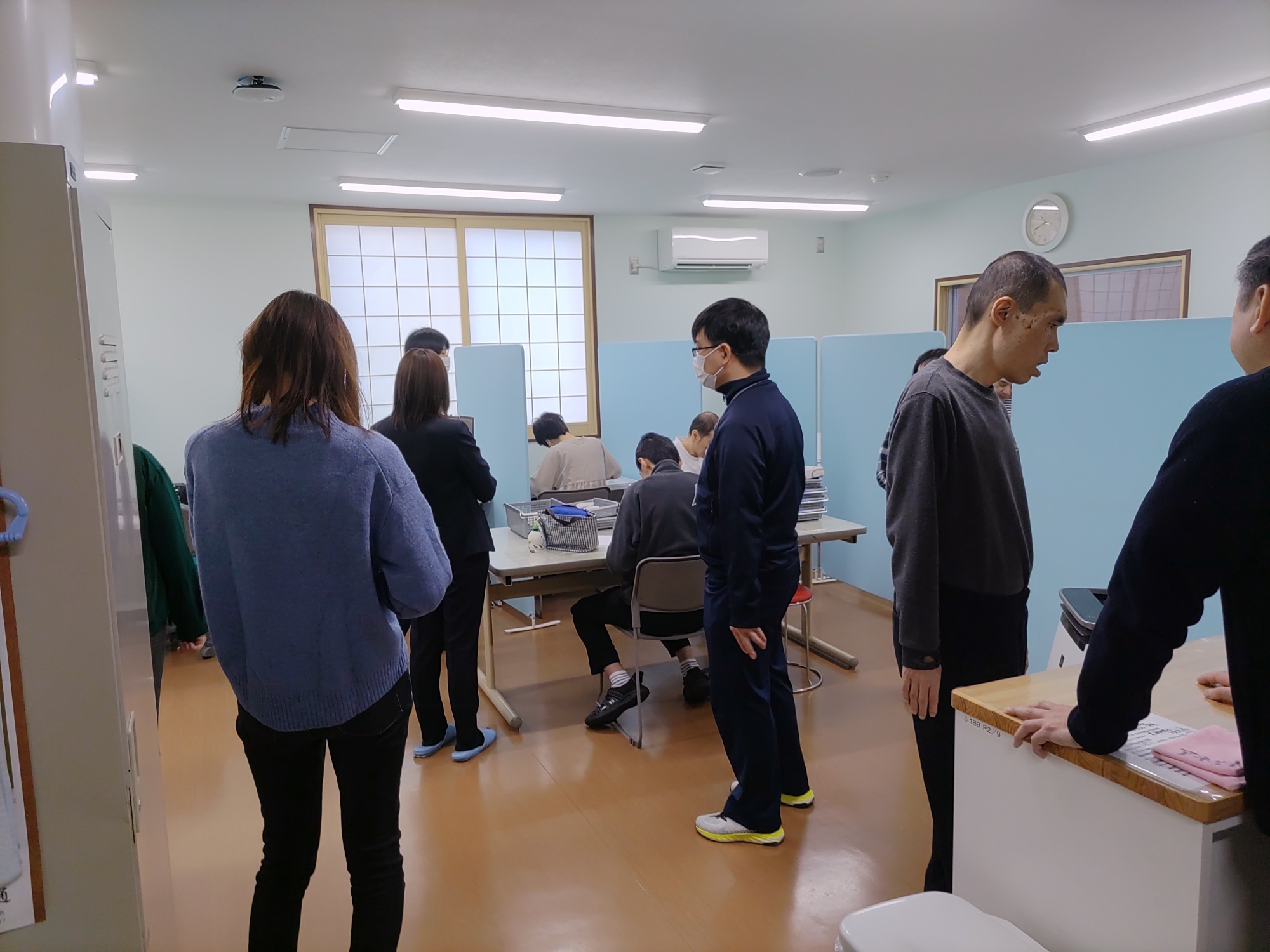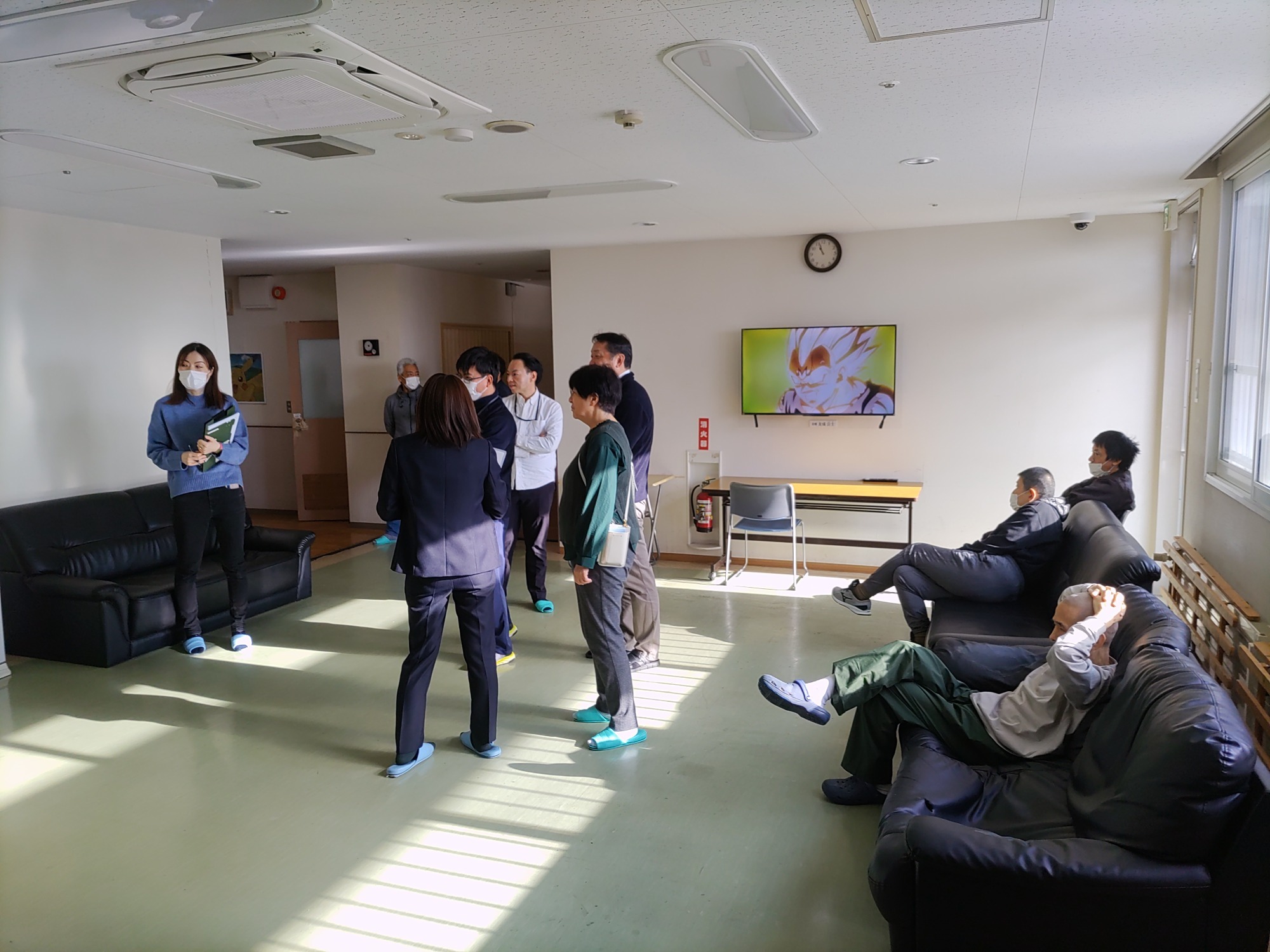 道央知的障がい者福祉施設協会では、オンブズマン(専門的な識見をもつ第三者)による施設訪問に取り組んでいます。今年度は道央地方会のなかで6か所の施設訪問を行っており、ふれあいの苑はその6番目の訪問施設となりました。12月2日に2名のオンブズマンと権利擁護関係職員の方々が訪問され、施設内の見学と利用者様や職員に聴き取りが行われました。総評として「施設職員が楽しくいきいきと働いている。職員の皆さんの丁寧な支援により、利用者様の表情が明るく施設の生活や食事を楽しんでいる。ぜひこれからも頑張ってほしい」とのことでした。