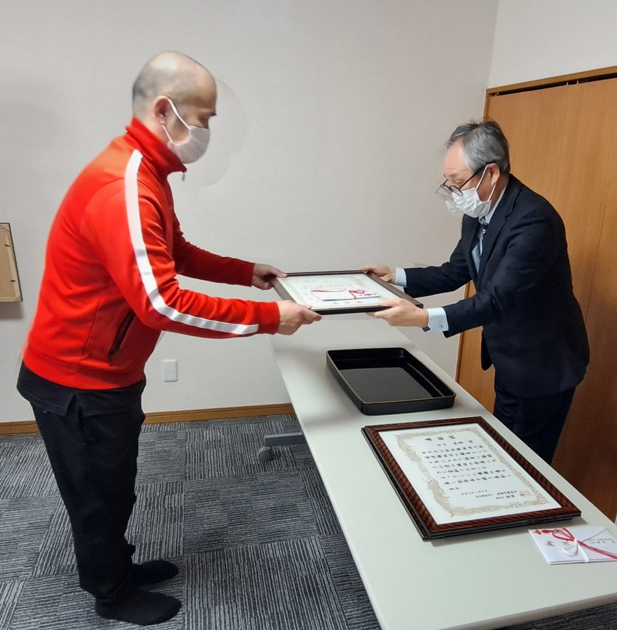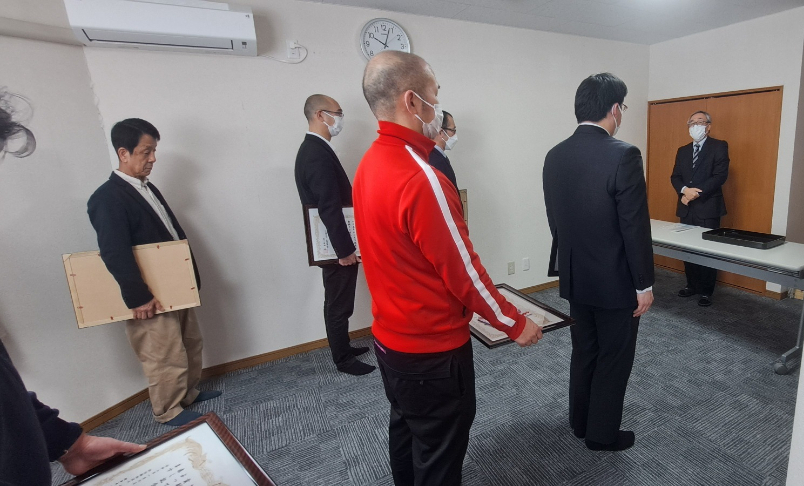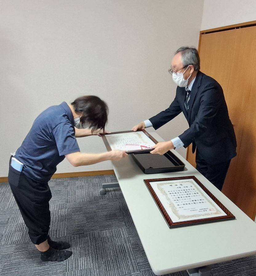 表彰された職員にはおめでとうございます。長い間、新篠津福祉会の発展に寄与していただいたことに感謝申し上げます。これからも体調に留意して勤務していいただきますよう、よろしくお願いいたします。