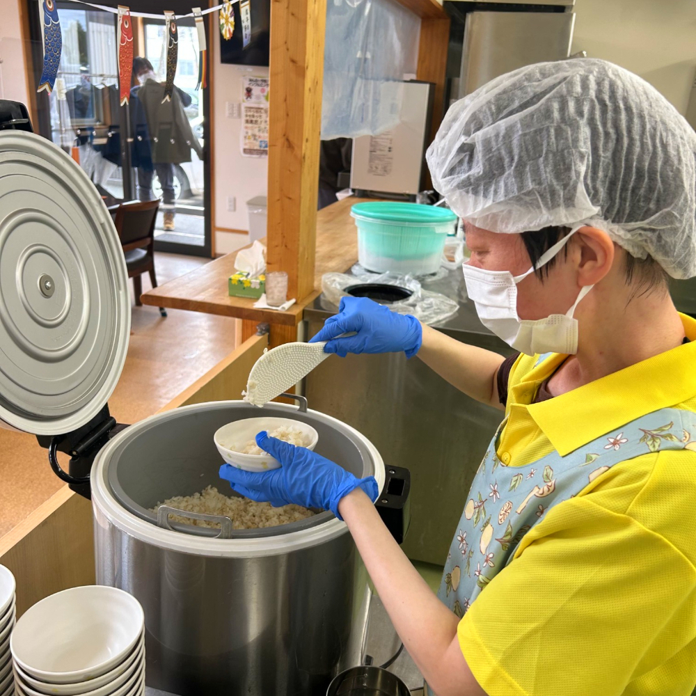 ○センターハウスみのり:通所者の昼食提供~事業所を利用される方の昼食の準備(準備補助等)、提供を主として仕事を提供します。
