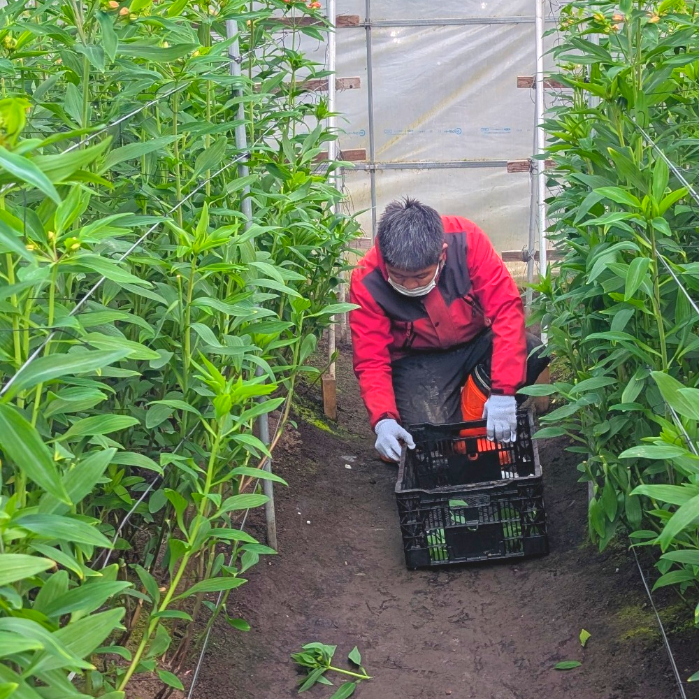 ○ハウス環境係:花卉栽培・委託事業~温室での花卉(アルストロメリア)の栽培や新篠津村からの委託事業(村営公園管理や高齢者住宅の除雪作業)を主として仕事を提供します。