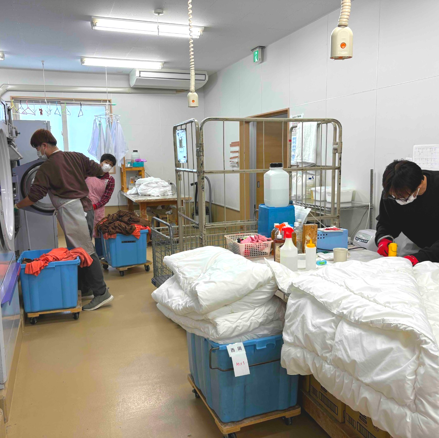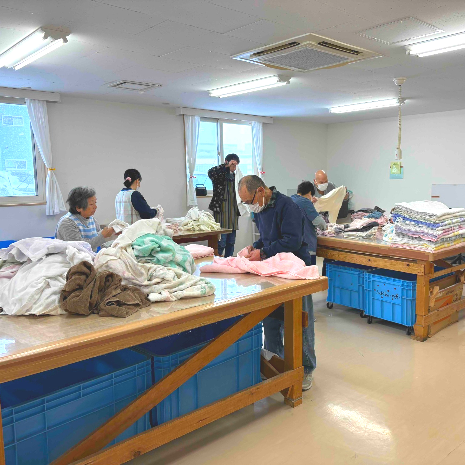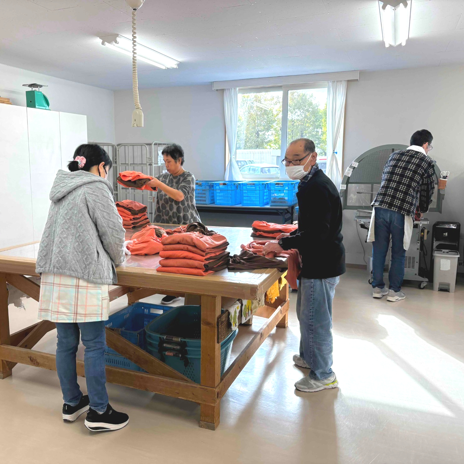○リネンサービス係:クリーニング~クリーニング会社よりの委託(下請け)を主に、タオル類、他施設の私物(衣類)たたみ、寝具類の洗濯乾燥、染み抜き等を仕事として提供します。
